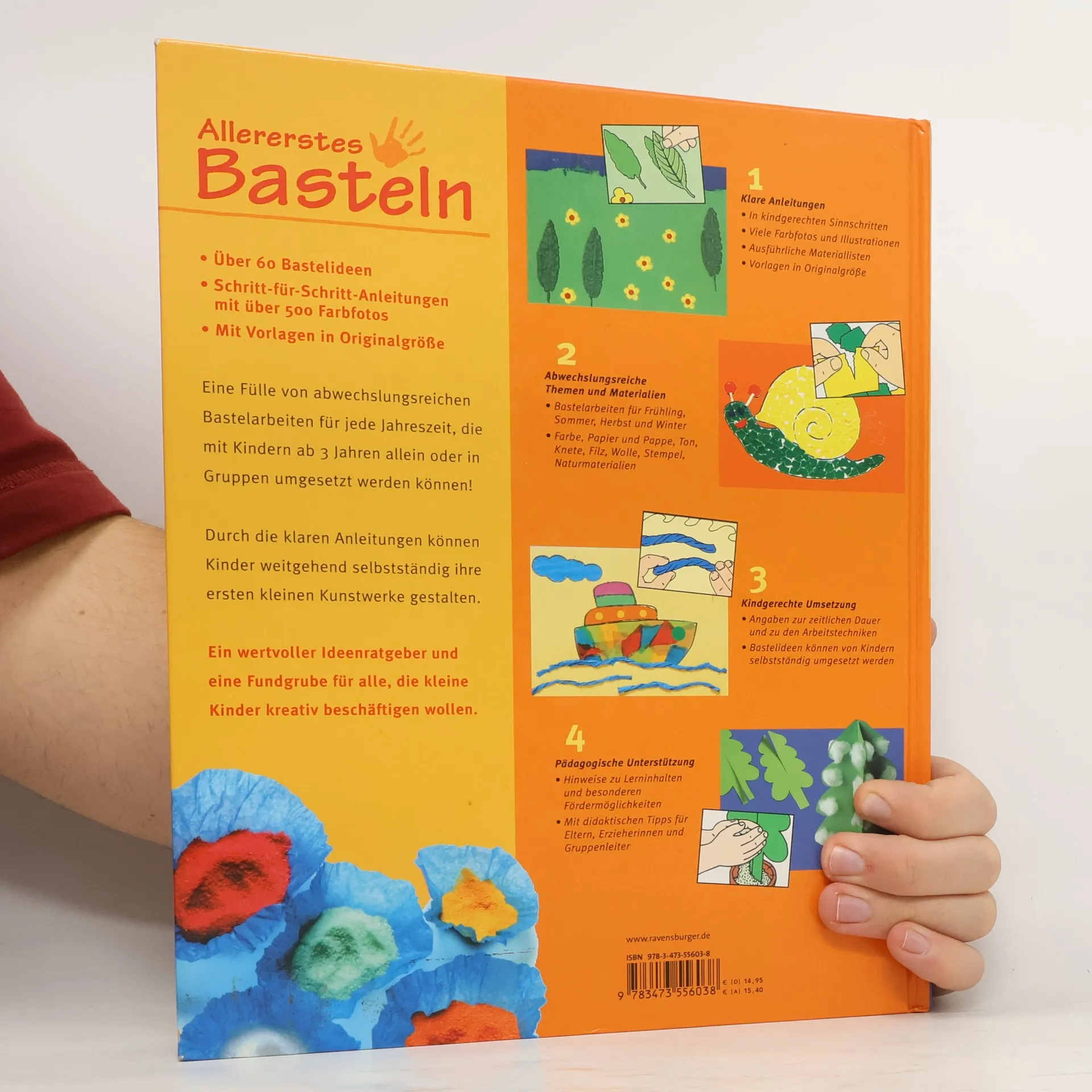 Dieser wertvolle Ideenratgeber für alle, die sich mit kleinen Kindern beschäftigen, zeigt einfache Bastelarbeiten mit Farbe, Papier, Pappe, Ton, Filz, Wolle, Knete, Stempel und Naturmaterialien. (Quelle: www.stauffacher.ch).