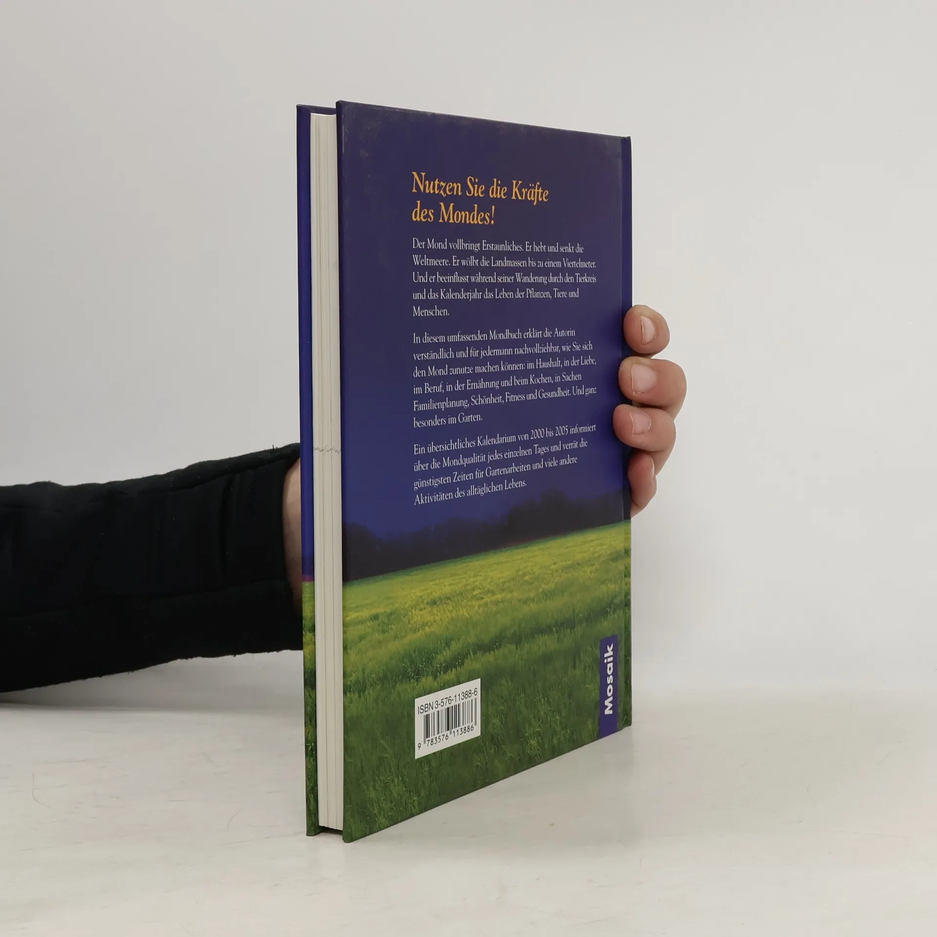 Der Mond vollbringt erstaunliches. Er hebt und senkt die Weltmeere. Er wölbt die Landmassen bis zu einem Viertelmeter. Und er beeinflusst während seiner Wanderung durch den Tierkreis und das Kalenderjahr das Leben der Pflanzen, Tiere und Menschen.In diesem umfassenden Mondbuch erklärt die Autorin verständlich und für jedermann nachvollziehbar, wie Sie sich den Mond zunutze machen können: im Haushalt, in der Liebe, im Beruf, in der Ernährung, und beim Kochen, in Sachen Familienplanung, Schönheit, Fitness und Gesundheit. Und ganz besonders im Garten.Ein übersichtliches Kalendarium von 2000 bis 2005 informiert über die Mondqualität jedes einzelnen Tages und verrät die günstigsten Zeiten für Gartenarbeiten und viele andere Aktivitäten des alltäglichen Lebens.(Klappentext)