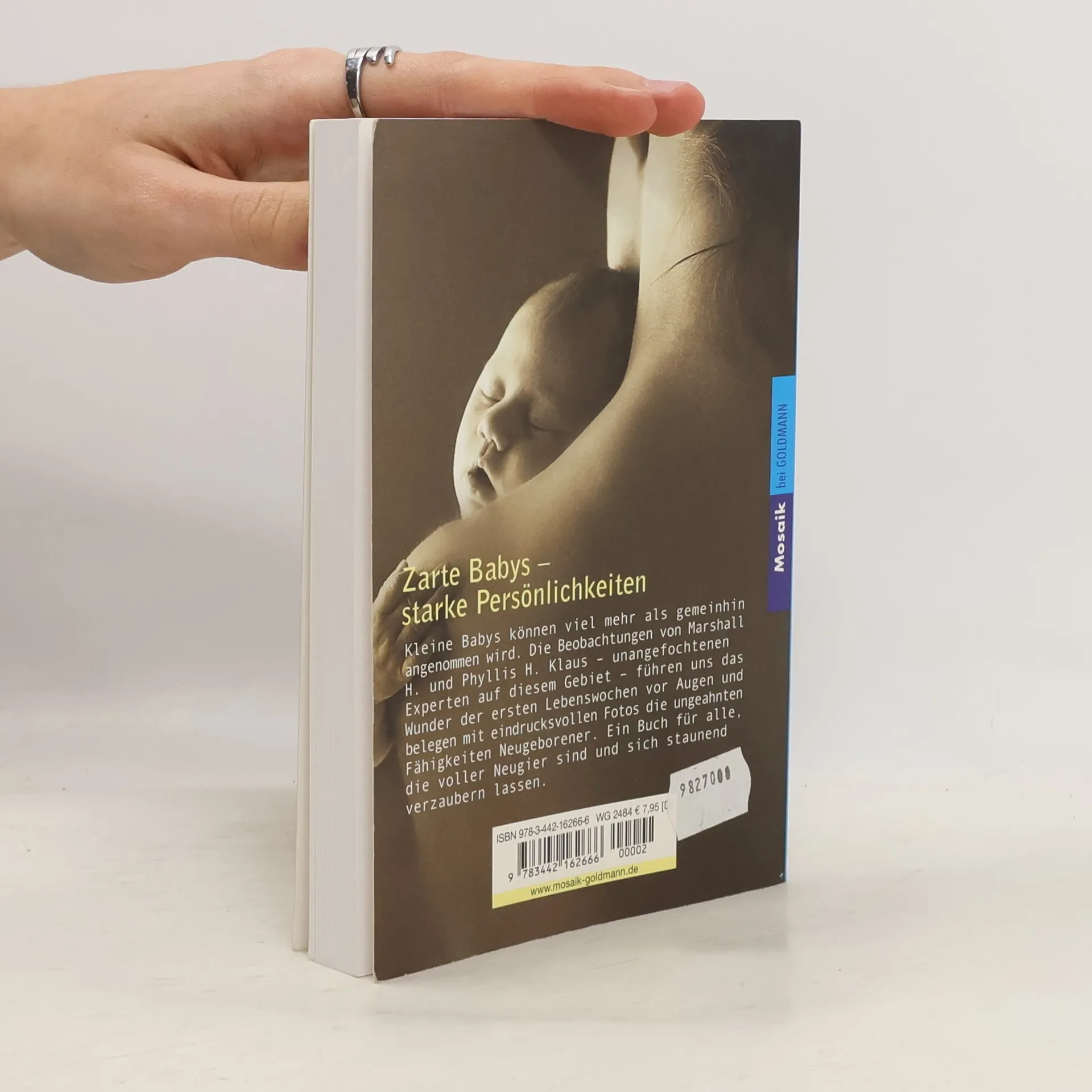 Babys kommen bereits als kleine Persönlichkeiten zur Welt. Das international renommierte Autorenpaar Marshall H. und Phyllis H. Klaus zeigt, was Neugeborene bereits können, wie sie ihre fünf Sinne gebrauchen, Bewegungen, Gefühle und Minenspiel üben und mit ihrer Umwelt in Kontakt treten. Das faszinierende Buch ermöglicht es jungen Eltern, ihr Kind besser kennen und verstehen zu lernen und ein lebenslanges Band der Liebe und des Vertrauens zu knüpfen.