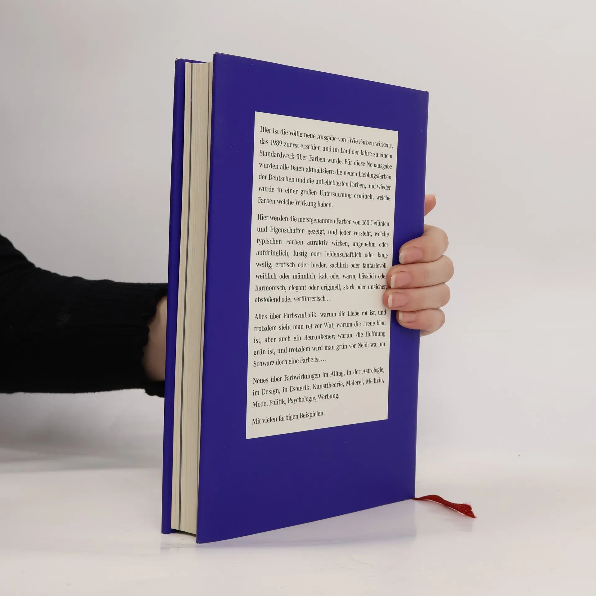 Hier ist die völlig neue Ausgabe von „Wie Farben wirken“, das 1989 zuerst erschien und im Lauf der Jahre zu einem Standardwerk über Farben wurde. Für diese Neuausgabe wurden alle Daten aktualisiert: die neuen Lieblingsfarben der Deutschen und die unbeliebtesten Farben, und wieder wurde in einer großen Untersuchung ermittelt, welche Farben welche Wirkung haben. Hier werden die meistgenannten Farben von 160 Gefühlen und Eigenschaften gezeigt, und jeder versteht, welche typischen Farben attraktiv wirken, angenehm oder aufdringlich, lustig oder leidenschaftlich oder langweilig, erotisch oder bieder, sachlich oder fantasievoll, weiblich oder männlich, kalt oder warm, hässlich oder harmonisch, elegant oder originell, stark oder unsicher, abstoßend oder verführerisch ... Alles über Farbsymbolik: warum die Liebe rot ist, und trotzdem sieht man rot vor Wut; warum die Treue blau ist, aber auch ein Betrunkener; warum die Hoffnung grün ist, und trotzdem wird man grün vor Neid; warum Schwarz doch eine Farbe ist ... Neues über Farbwirkungen im Alltag, in der Astrologie, im Design, in Esoterik, Kunsttheorie, Malerei, Medizin, Mode, Politik, Psychologie, Werbung. Mit vielen farbigen Beispielen.