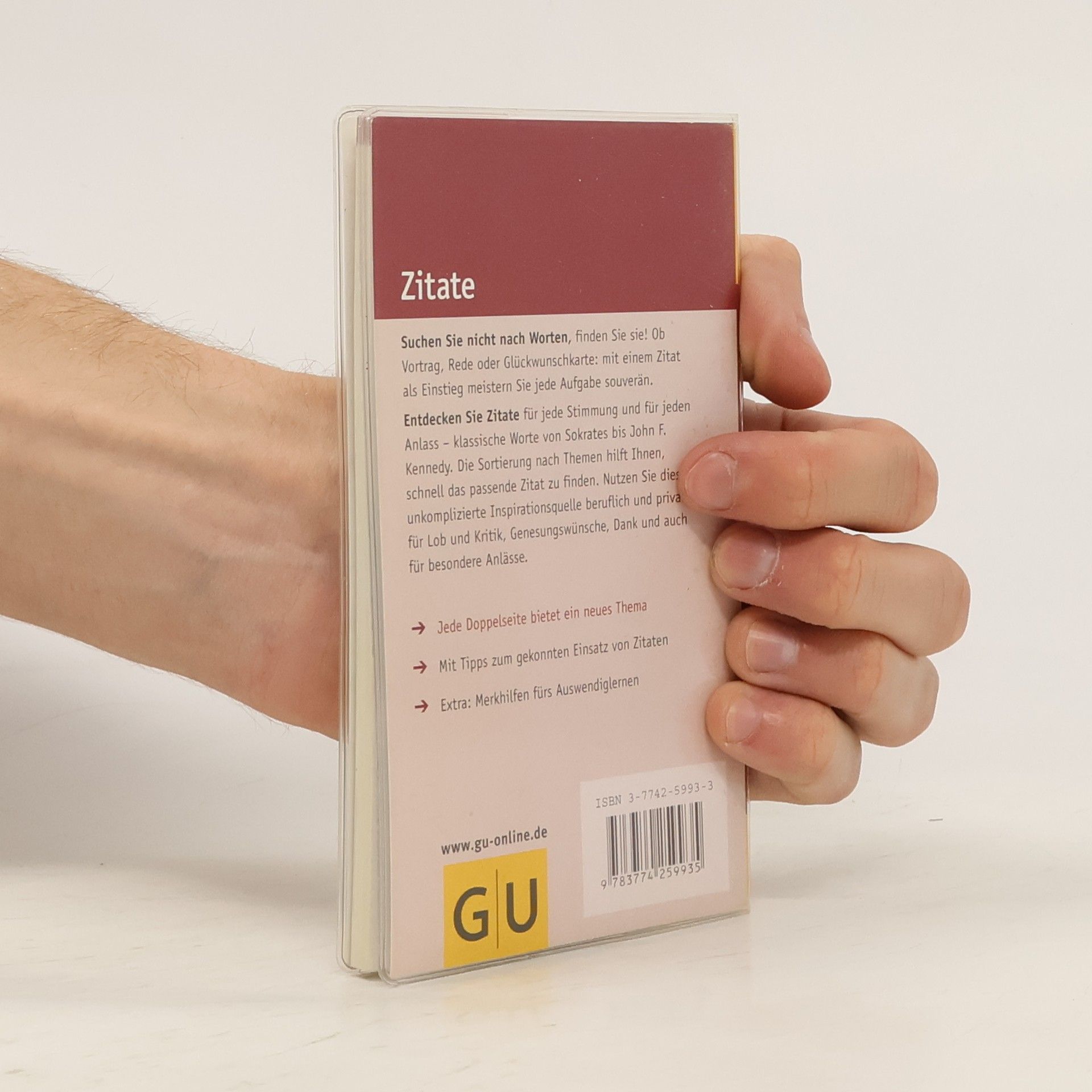 Betriebsjubiläum, ein runder Geburtstag, Hochzeiten oder die Verabschiedung eines Kollegen: zu vielen Gelegenheiten im Berufs- oder Privatleben wird eine ansprechende Rede erwartet. Mit einem Zitat als Redeeinstieg oder –abschluss gewinnen Sie die Zuhörer leicht für sich. Mit angestaubten Weisheiten können Sie da nicht punkten: in diesem Buch stehen wiederentdeckte Klassiker neben dem besten von heute; klassische und moderne Zitate für jeden Anlass, schnell auffindbar nach Themen gegliedert. Tipps zum gekonnten Einsatz von Zitaten und Merkhilfen fürs Auswendiglernen runden das Buch ab.