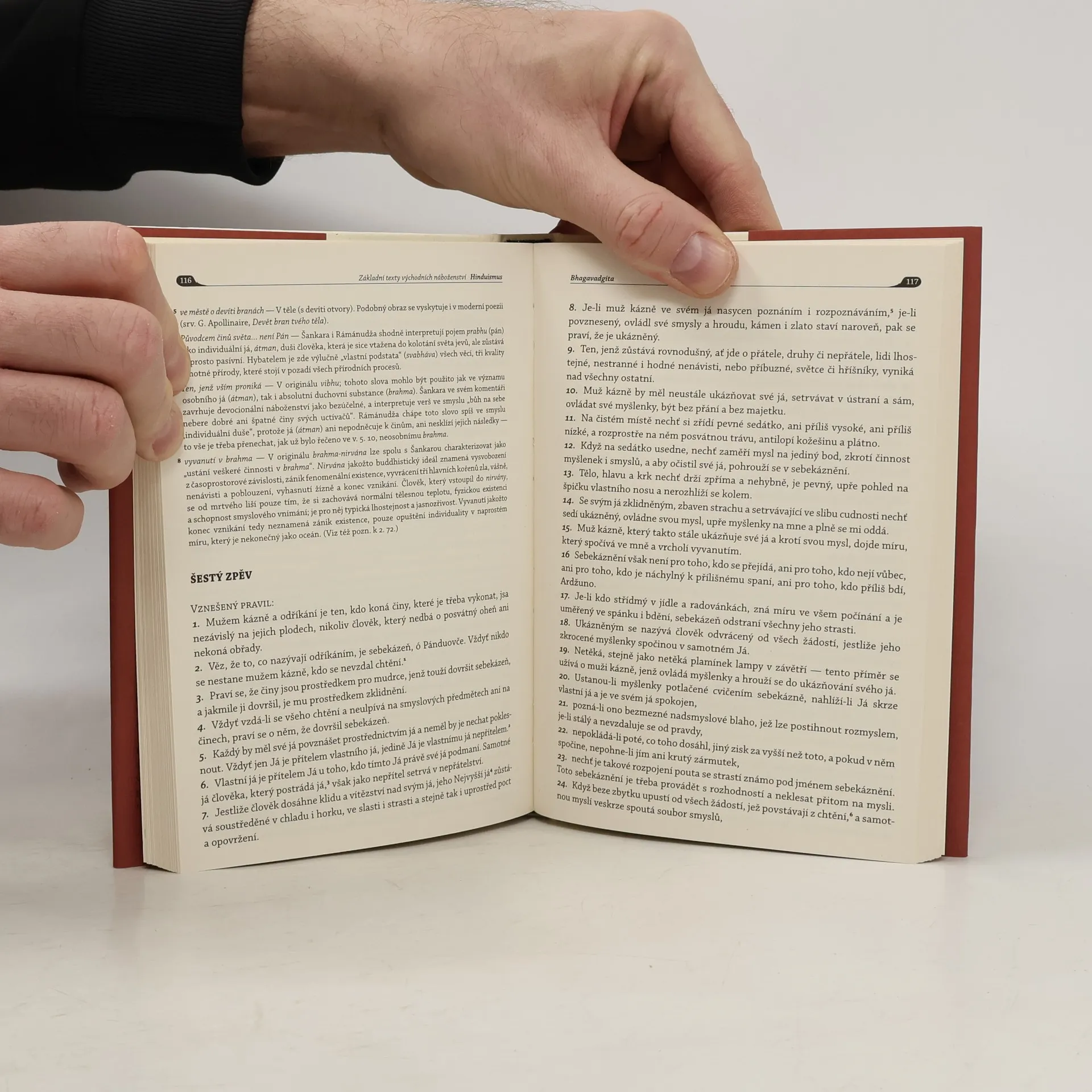 První část čtyřsvazkového díla zahrnuje některé hymny a písně z véd, výňatky z komentářů bráhman, výběr z upanišad, vybrané partie ze šáster, Bhagavadgítu, několik dalších kratších textů z Mahábháraty a ukázky z purán. Jednotlivé oddíly jsou opatřeny kratšími úvody, poznámkami a vysvětlivkami, celý svazek pak doprovází výběrová bibliografie.