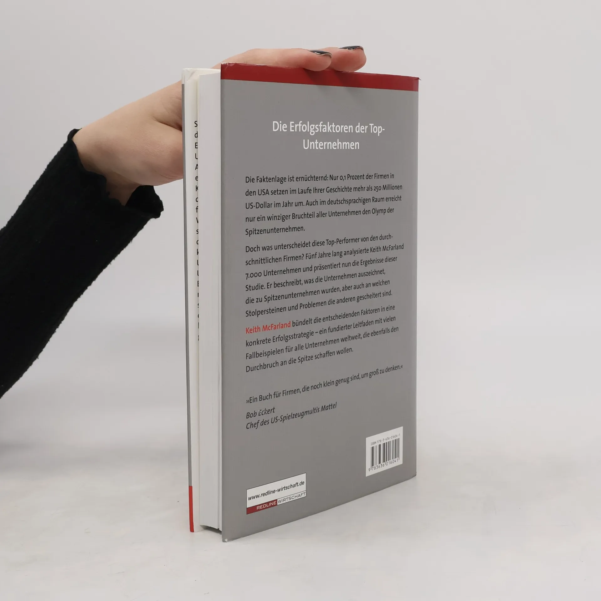 Nur magere 0,1 Prozent aller in den USA gegründeten Firmen schaffen es, irgendwann mehr als 250 Millionen Dollar im Jahr umzusetzen. Keith McFarland ging von dieser nüchternen Basis aus und analysierte über fünf Jahre lang 7000 Unternehmen, um herauszufinden, was diese 0,1 Prozent von allen anderen unterscheidet und auszeichnet. „Der Durchbruch“ basiert auf dieser Studie und fasst ihre wichtigsten Ergebnisse für Unternehmer und Manager praxisorientiert und anhand zahlreicher Beispiele zusammen. Eine Kernerkenntnis: Es ist kein Glück sondern konsequente Arbeit, wenn es gelingt, Kultprodukte zu kreieren und die Umsätze stetig zu steigern. Der Autor stellt konkret dar, was Firmen, die es wirklich schaffen, auszeichnet und entlarvt häufige Probleme und Stolpersteine. Vor allem aber bietet McFarland die wichtigsten Erfolgstrategien von Top-Firmen.