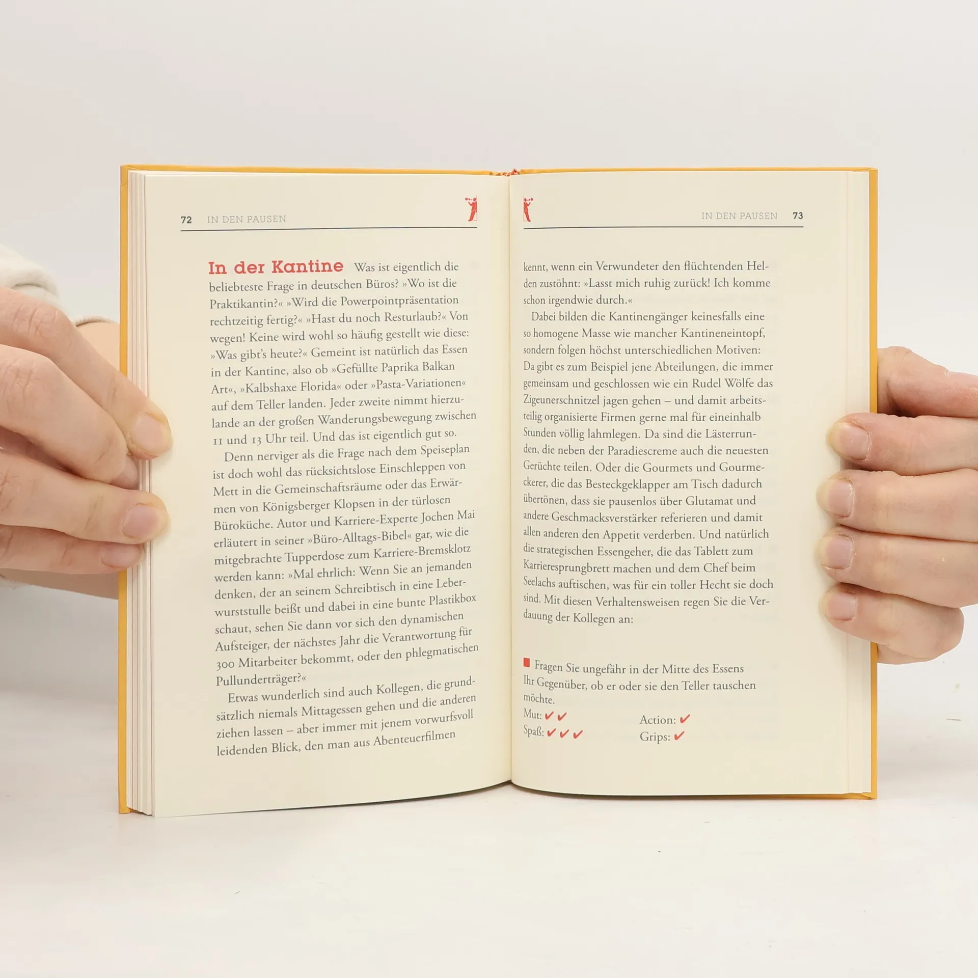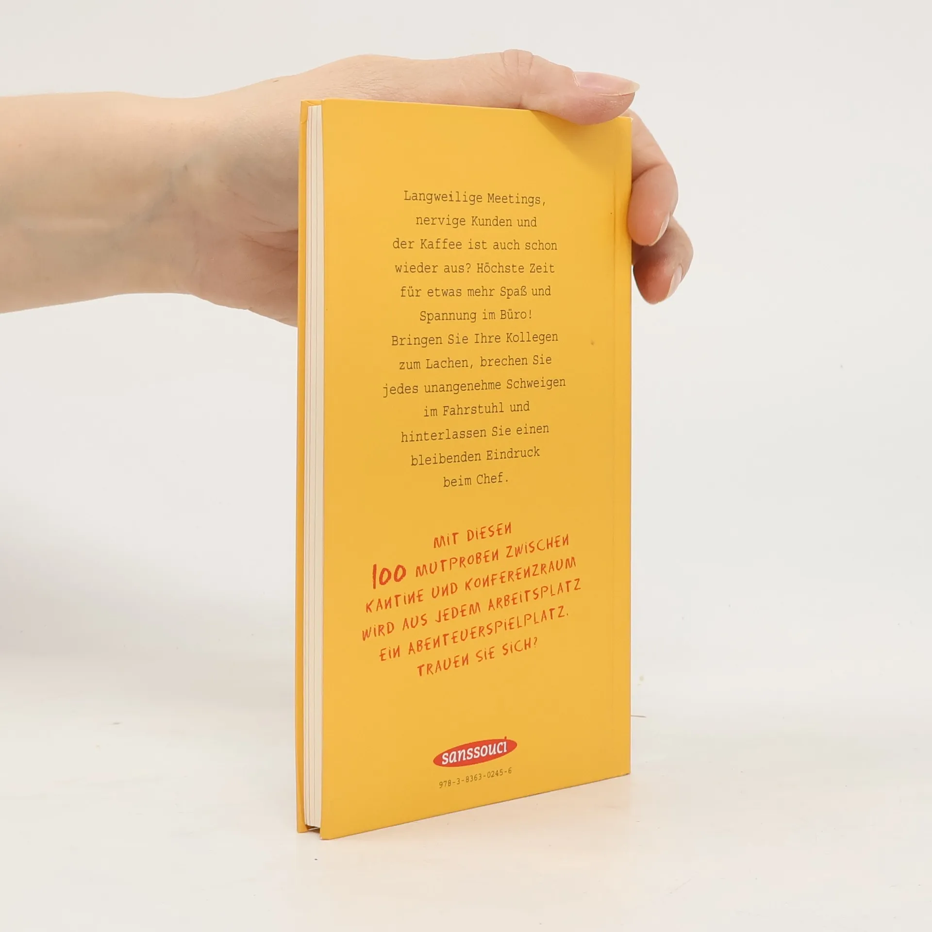 Ein ganz normaler Tag im Büro: Der Kühlschrank in der Gemeinschaftsküche entwickelt ein Eigenleben, im Lift herrscht unangenehmes Schweigen, und in Konferenzen melden sich immer die gleichen Wichtigtuer zu Wort. Da wünscht man sich doch etwas mehr Spaß und Spannung! Wie das geht, zeigt Timo Lokoschat mit seinen 100 Mutproben zwischen Empfang, Sekretariat, Konferenzraum und Kantine. Zur Einschätzung von Risiken und Nebenwirkungen ist jeder Vorschlag nach Kategorien wie Spaß, Action, Mut und Aufwand bewertet. Mit diesem perfekten Geschenk für alle Kollegen wird jedes Büro zum Abenteuerspielplatz!