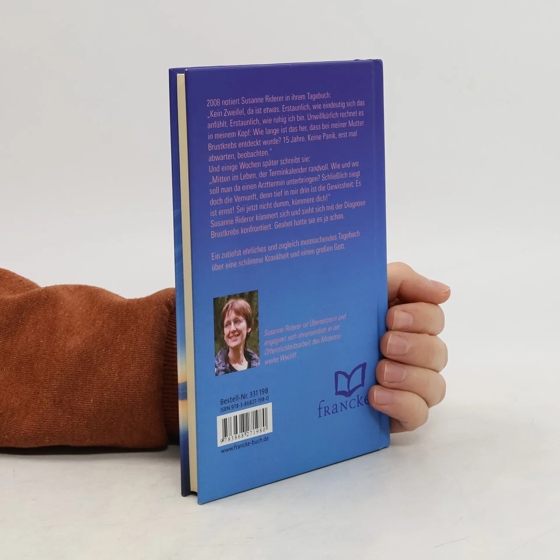 2008 notiert Susanne Riderer in ihrem Tagebuch: „Kein Zweifel, da ist etwas. Erstaunlich, wie eindeutig sich das anfühlt. Erstaunlich, wie ruhig ich bin. Unwillkürlich rechnet es in meinem Kopf: Wie lange ist das her, dass bei meiner Mutter Brustkrebs entdeckt wurde? 15 Jahre. Keine Panik, erst mal abwarten, beobachten.“ Und einige Wochen später schreibt sie: „Mitten im Leben, der Terminkalender randvoll. Wie und wo soll man da einen Arzttermin unterbringen? Schließlich siegt doch die Vernunft, denn tief in mir drin ist die Gewissheit: Es ist ernst! Sei jetzt nicht dumm, kümmere dich!“ Susanne Riderer kümmert sich und sieht sich mit der Diagnose Brustkrebs konfrontiert. Geahnt hatte sie es ja schon. Ein zutiefst ehrliches und zugleich mutmachendes Tagebuch über eine schlimme Krankheit und einen großen Gott.