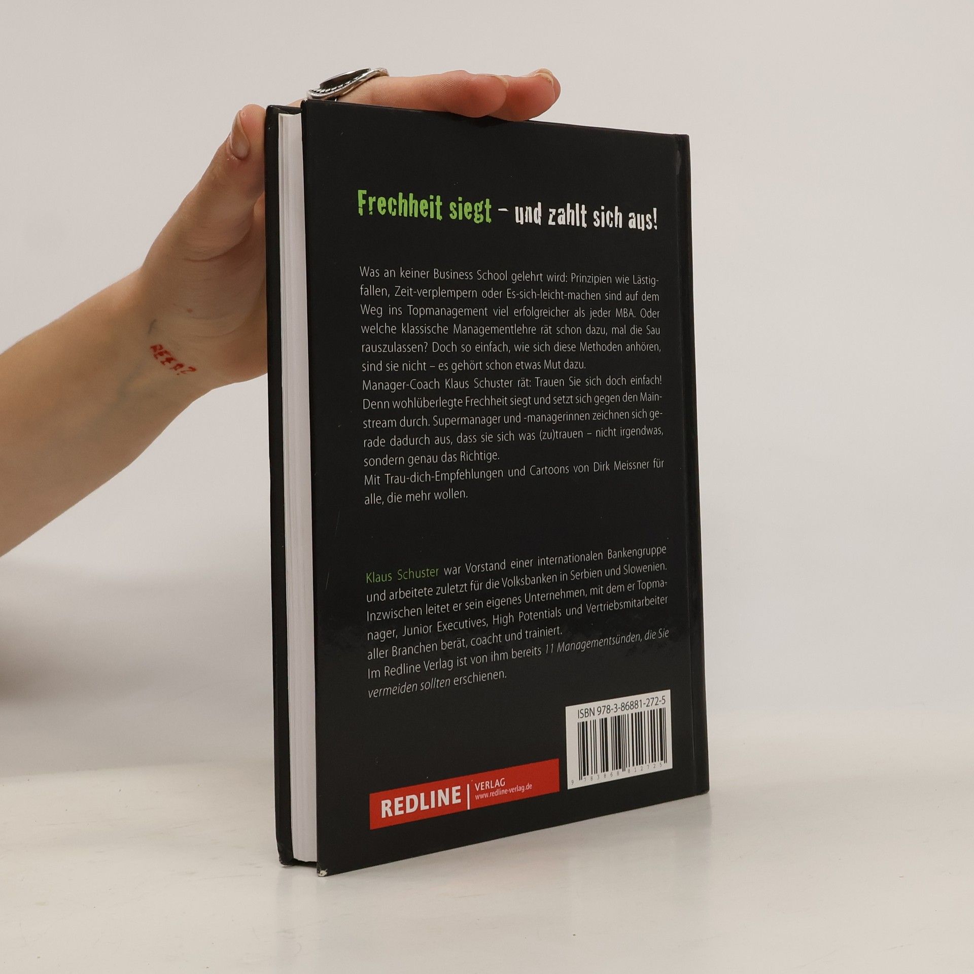 Wer hätte gedacht, dass man mit Laissez-faire, Lästigkeit oder schlechtem Benehmen mehr erreicht als mit herkömmlichen Managementprinzipien? Und dass Die-Sau-rauslassen, Es-sichleicht-machen oder Den-Vorstand-vergessen sich durchaus positiv auf die eigene Karriere auswirken können? Dieses Buch liefert sieben erfrischend freche und außergewöhnliche Wege, um im Management weiterzukommen – nämlich genau jene, an die die klassische Lehre nicht einmal zu denken wagt. Die Prinzipien sind bestechend einfach, aber ihre Umsetzung erfordert eine gehörige Portion Mut. Manager-Coach Klaus Schuster rät: Trauen Sie sich doch einfach! Es lohnt sich, innere Blockaden zu überwinden und sich mehr zuzutrauen. Denn wohlüberlegte Frechheit siegt und setzt sich gegen den Mainstream durch. Super-Manager zeichnen sich gerade dadurch aus, dass sie sich was trauen – nicht irgendetwas, sondern genau das Richtige.