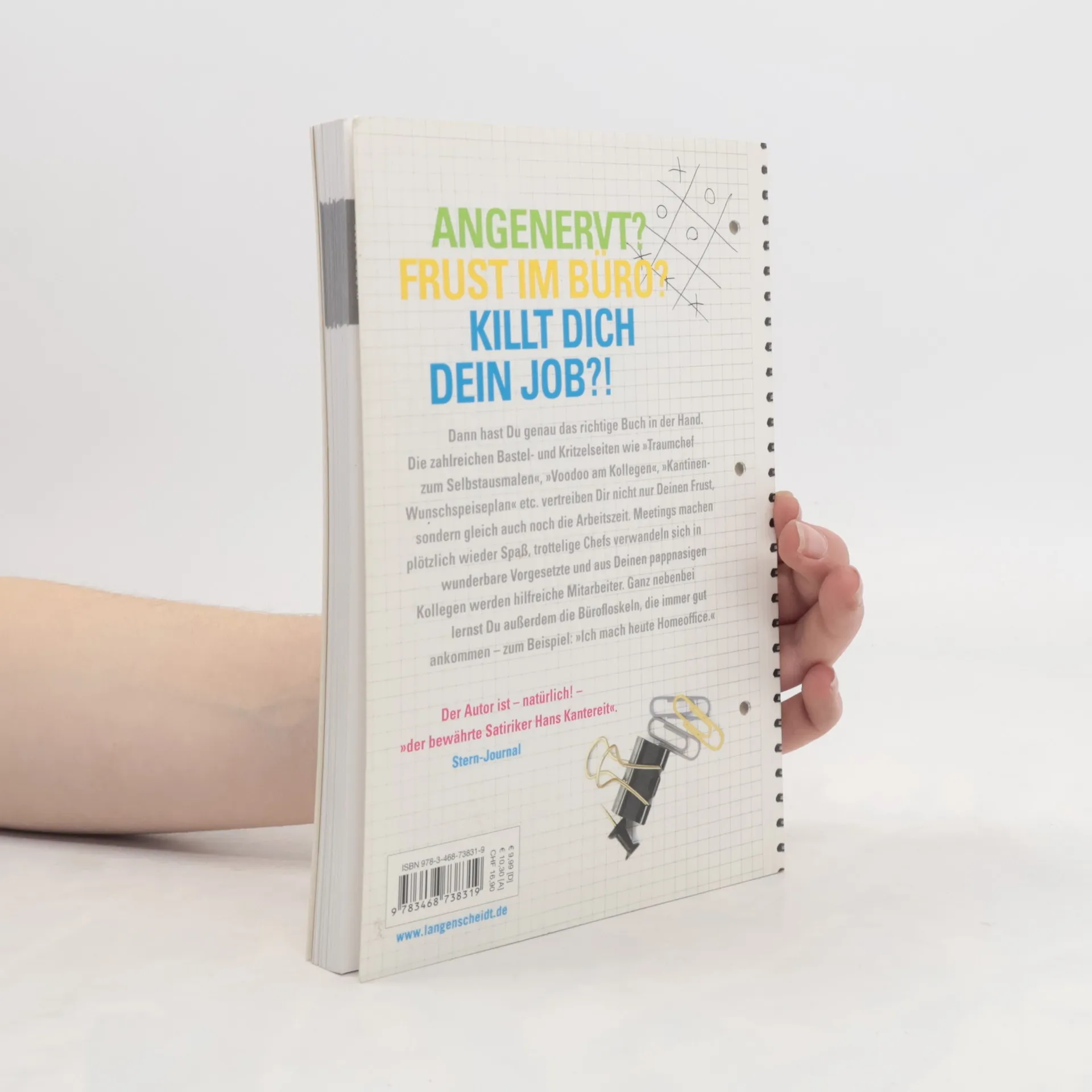 Angenervt? Frust im Büro? Killt dich dein Job?. …dann hast du hier genau das richtige Buch gefunden! Die zahlreichen Bastel- und Kritzelseiten wie „Traumchef zum Selberausmalen“, „Voodoo am Kollegen“, „Kantinen-Wunschspeiseplan“, etc. vertreiben dir nicht nur den Frust, sondern gleichzeitig auch die Arbeitszeit. Meetings machen plötzlich wieder Spaß, trottelige Chefs verwandeln sich in wunderbare Vorgesetzte und aus den pappnasigen Kollegen werden hilfreiche Mitarbeiter. Ganz nebenbei lernst Du außerdem die Bürofloskeln, die immer gut ankommen, zum Beispiel: "Ich mach' heute Homeoffice.„ * Bürofloskeln, die nicht nur beim Chef gut ankommen: In diesem Projekt fliegen wir voll auf Sicht! Wir verraten Dir, was sie bedeuten. * Zahlreiche Seiten zum Kritzeln und Malen, falls es mal langweilig ist im Büro: Mal dir deine Lieblingskollegin bzw. -kollegen! * Zum Ausfüllen: Bullshitbingo, Wunschkantinenplan, Marottentagebuch und Fragebögen “Bin ich für Arbeit anfällig?„ versüßen den Arbeitstag * Für Notfälle: “Bitte nicht Stören"-Schild zum Selberbasteln