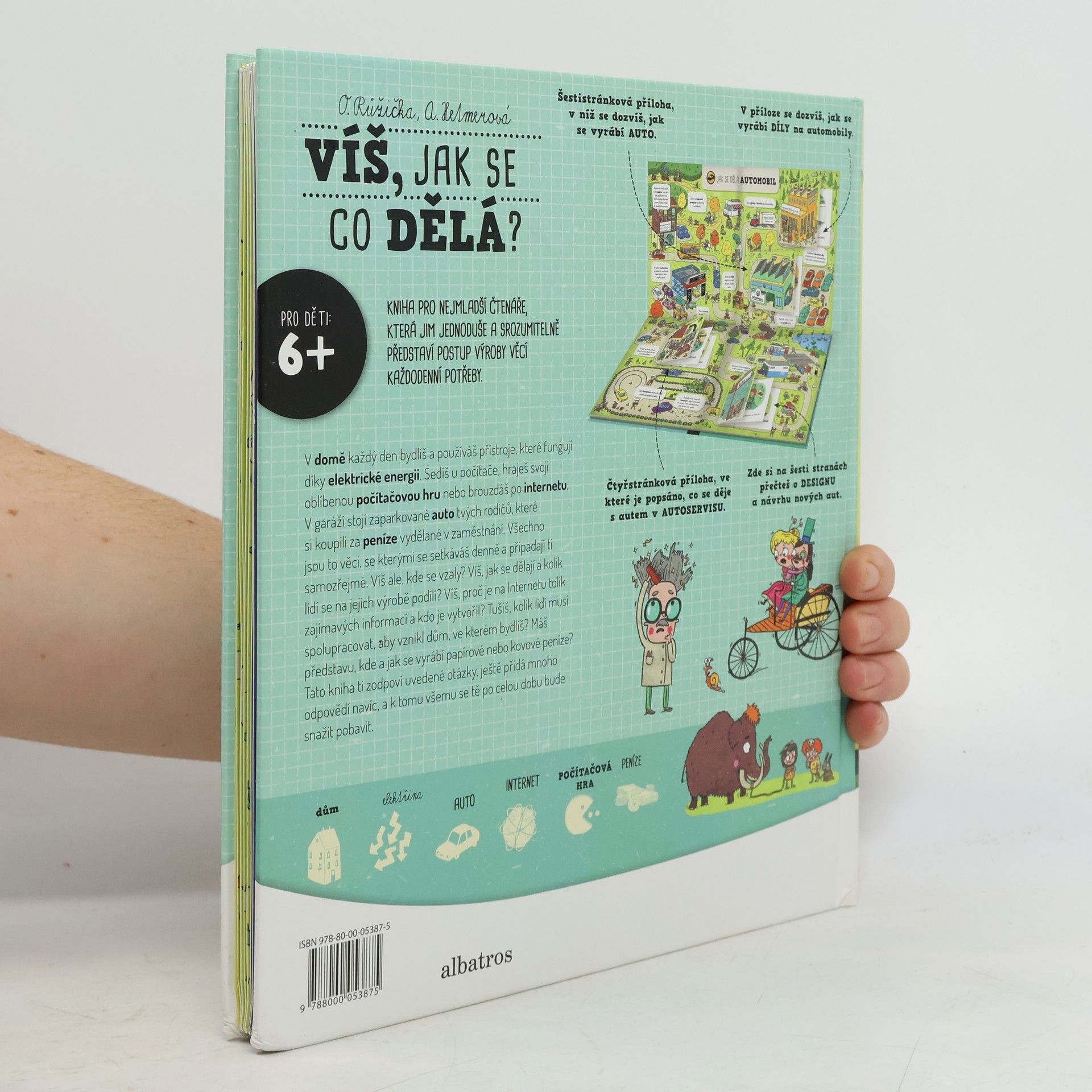 Víte, jak se vyrábí elektřina, automobil nebo jak funguje internet? Publikace s rozkládacími listy a otevíracími okénky. Pro mladší děti.Co vše je potřeba např. k postavení domu (od získávání surovin přes technologii výroby až po konečný produkt). To vše stručně a jednoduše vysvětleno na celostránkových ilustracích, doplněných krátkými texty.