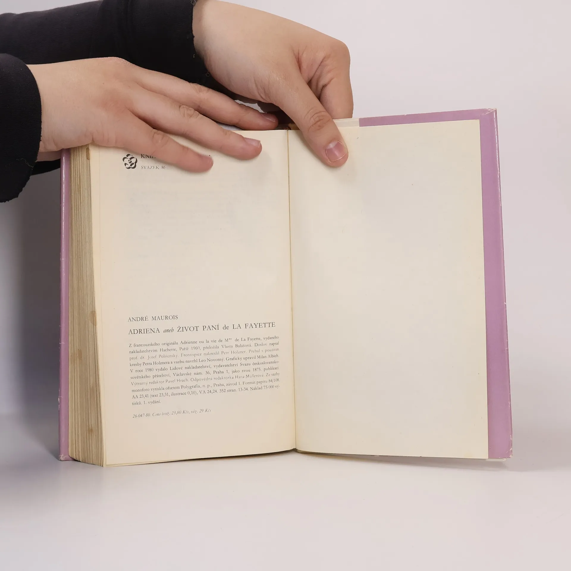 Kniha je věnována životu manželky francouzského politika a vojáka, markýze de La Fayette. Autor popisuje historické události druhé poloviny 18. století, které tvoří k této biografii zajímavý rámec. Podnětem k napsání tohoto díla bylo autorovo náhodné objevení dosud nezveřejněných dokumentů a dopisů hlavní hrdinky knihy Adrieny de La Fayette. Historie událostí Velké francouzské revoluce a boje Spojených států amerických za nezávislost tvoří fascinující, někdy až dominantní pozadí životopisu jedné z nejoddanějších a nejstatečnějších žen, která z lásky následovala svého manžela i do krutého vězení, i když ji to málem stálo život.