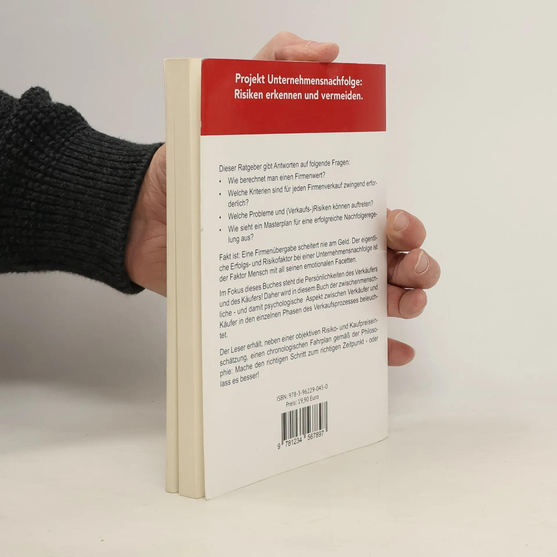 Dieser Ratgeber gibt Antworten auf folgende Fragen: • Wie berechnet man einen Firmenwert? • Welche Kriterien sind für jeden Firmenverkauf zwingend erforderlich? • Welche Probleme und (Verkaufs-)Risiken können auftreten? • Wie sieht ein Masterplan für eine erfolgreiche Nachfolgeregelung aus? Fakt ist: Eine Firmenübergabe scheitert nie am Geld. Der eigentliche Erfolgs- und Risikofaktor bei einer Unternehmensnachfolge ist der Faktor Mensch mit all seinen emotionalen Facetten. Im Fokus dieses Buches steht die Persönlichkeiten des Verkäufers und des Käufers! Daher wird in diesem Buch der zwischenmenschliche - und damit psychologische Aspekt zwischen Verkäufer und Käufer in den einzelnen Phasen des Verkaufsprozesses beleuchtet. Der Leser erhält, neben einer objektiven Risiko- und Kaufpreiseinschätzung, einen chronologischen Fahrplan gemäß der Philosophie: Mache den richtigen Schritt zum richtigen Zeitpunkt - oder lass es besser!