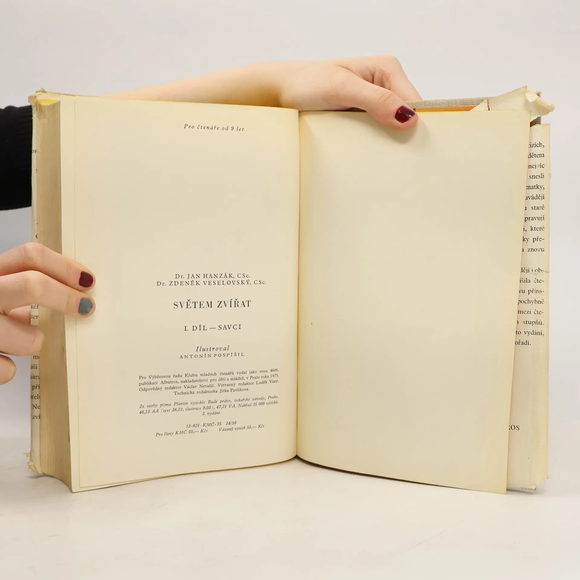 První díl obsáhlé publikace encyklopedického charakteru, pojednávající o savcích, je určen především dětem a mládeži. Obrázky kreslil Antonín Pospíšil.