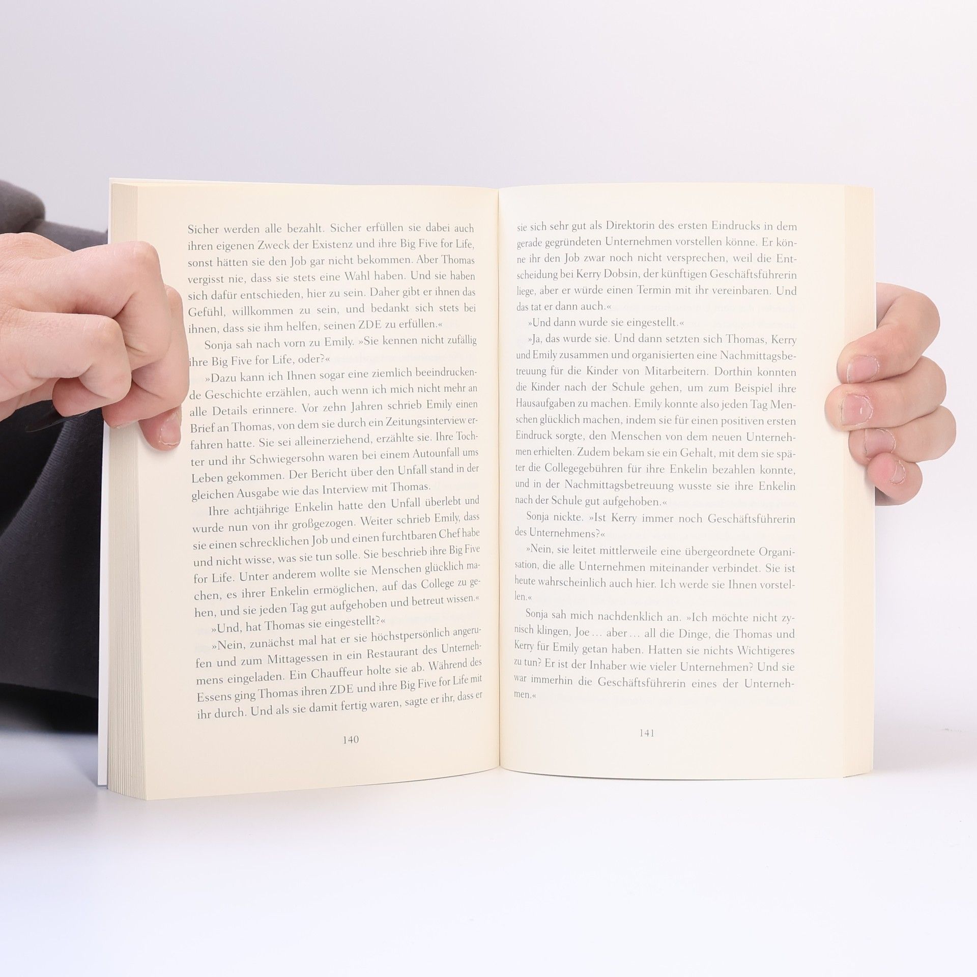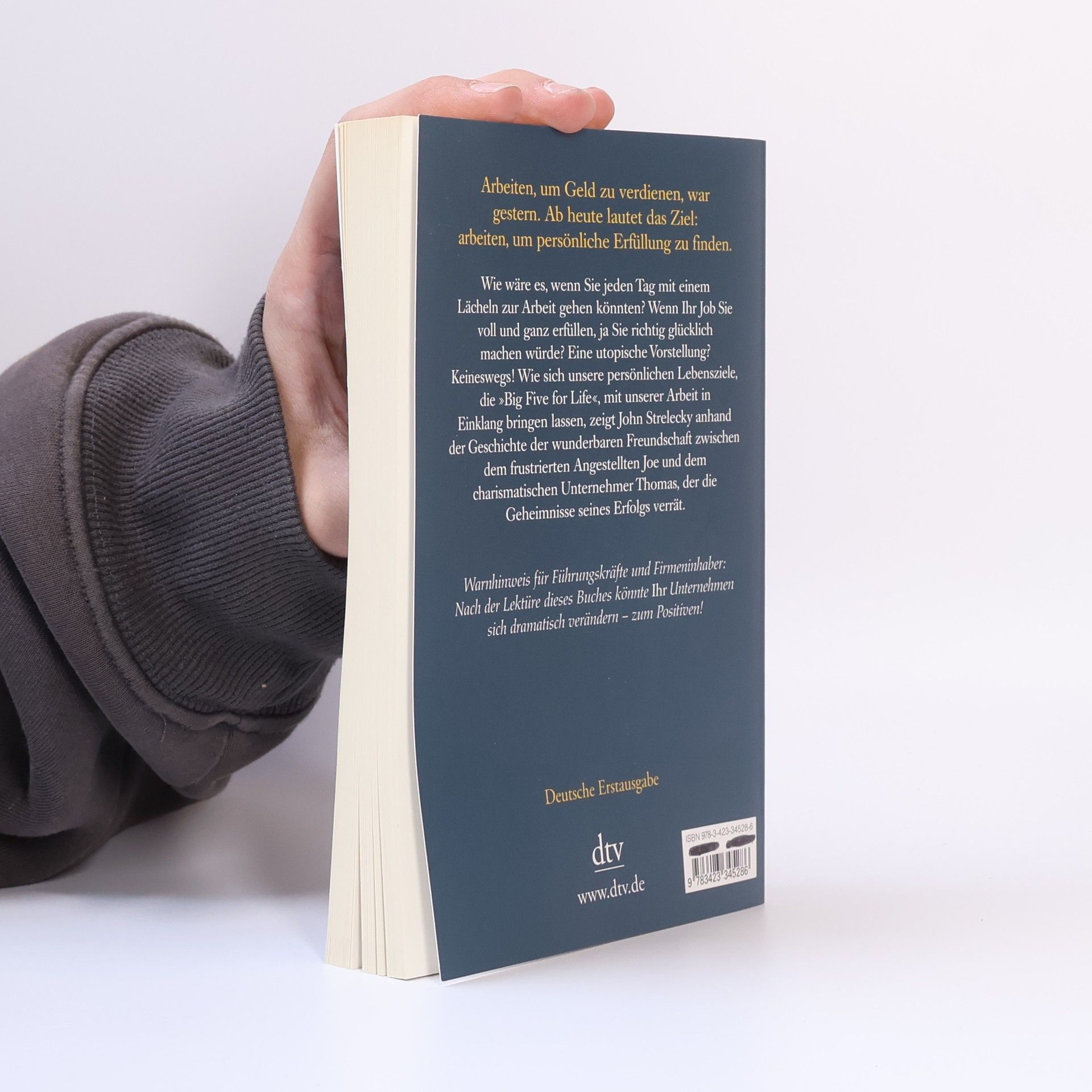 Arbeiten, um Geld zu verdienen, war gestern Durch Zufall lernt Joe, ein mit seinem Job unzufriedener Angestellter, den charismatischen Geschäftsmann Thomas kennen. Rasch entwickelt sich eine tiefe Freundschaft zwischen den beiden Männern. Thomas wird zu Joes Mentor und offenbart ihm die Geheimnisse seines Erfolgs. Er zeigt Joe, wie wichtig es ist, auch in der Arbeit erfüllt zu sein. Seine Unternehmen führt Thomas anhand zweier Leitlinien: Jeder Mitarbeiter muss seine Bestimmung sowie seine »Big Five for Life« kennen, also wissen, welche fünf Ziele er im Leben erreichen will. Diese Ideen helfen Joe, seine Wünsche zu verwirklichen. Doch Thomas will möglichst viele an seinem Wissen teilhaben lassen: Seine gesammelten Aufzeichnungen liegen hier vor Ihnen. Arbeiten, um Geld zu verdienen, war gestern. Ab heute lautet das Ziel: arbeiten, um persönliche Erfüllung zu finden.