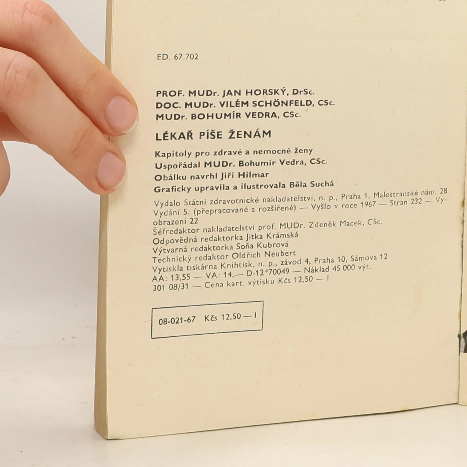 Lékař píše ženám, Bohumír Vedra, Vilém Schönfeld, Jan Horský