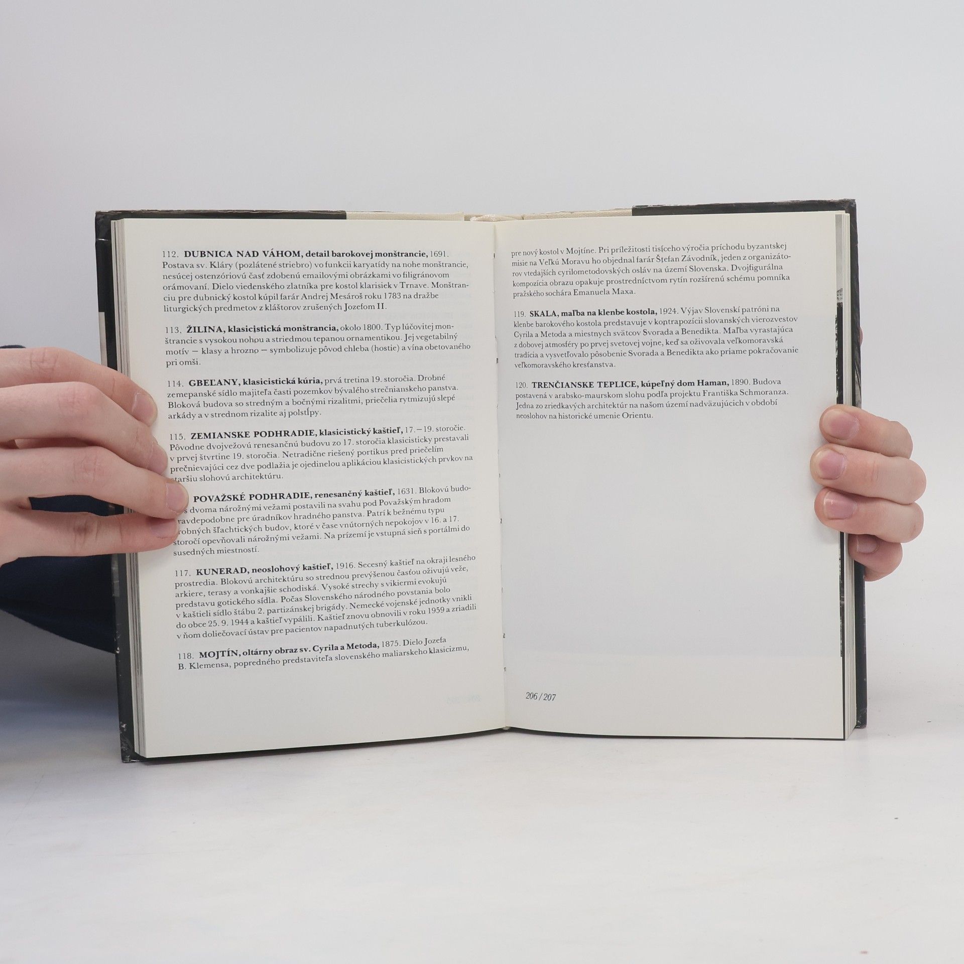 Obrazový sprievodca po pamiatkach z hľadiska regionálneho. Cieľom však nie je iba vyratúvanie pamiatok, ale autor sleduje špecifické znaky historického vývinu jednotlivých regiónov a z nich vyplývajúcu štruktúru pamiatkového fondu. Rozdelil ich na 11 regiónov, ktoré rešpektujú hranice historických žúp...