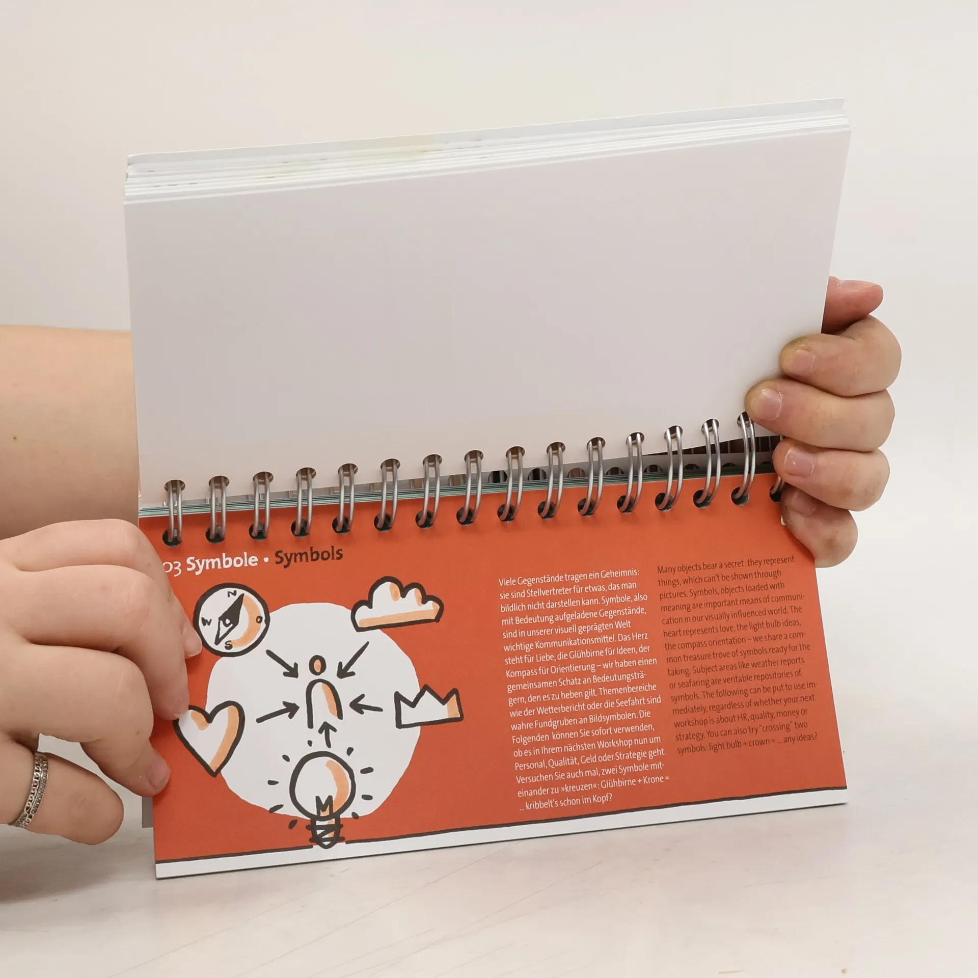 Visuelles Wörterbuch - Ein einzigartiges Nachschlagewerk der Bildsprache mit hunderten von erfolgreichen Bildsymbolen in der einfach zu zeichnenden bikablo®-Technik. Visualisieren Sie! Sagen Sies durch die Blume (oder die Glühbirne, die Gewitterwolke, den Wegweiser). Arbeiten Sie mit der Kraft der Bilder, um Gespanntes zu lösen, Kompliziertes zu strukturieren, Schwieriges auszusprechen, Abstraktes greifbar zu machen und Entscheidendes merkbar. Bilder machen jedem/r Spaß, wirken emotional und verbindend und transportieren Inhalte oft besser als Worte. Der „Ur-bikablo®“ (Bilder-Karten-Block) ist Ihre Eintrittskarte in die Welt der Visualisierung: Martin Haussmann, Illustrator, erfahrener Visual Facilitator und Geschäftsführer der bikablo ®-akademie hat hunderte von erfolgreichen Bildsymbolen zusammengestellt und so ein einzigartiges Nachschlagewerk der Bildsprache geschaffen, das speziell auf die Bedürfnisse von Trainern, Moderatoren und Beratern zugeschnitten ist. Mit dem Trainer-Wörterbuch der Bildsprache treffen Sie den Nagel auf den Kopf, selbst wenn es komplex wird. Die Zeichnungen sind so einfach gehalten, dass Sie sie problemlos mit Filzmarkern durchpausen, variieren und auf dem Flipchart nachzeichnen können, auch wenn Sie bisher der Meinung waren, dass Sie gar nicht zeichnen können. Der bikablo® 1 darf auch in Ihrem Moderatorenkoffer nicht fehlen!
