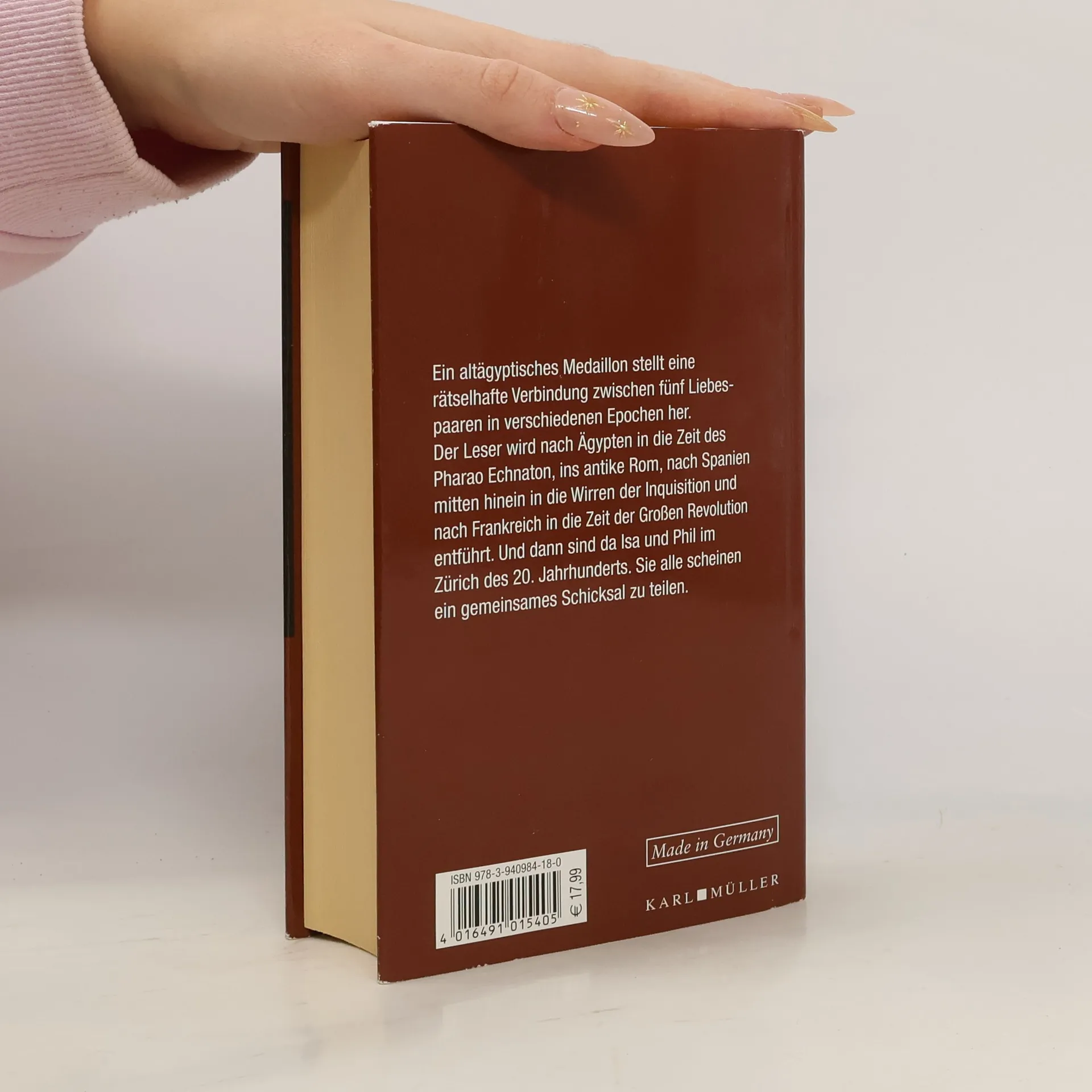 Isa und Phil wollen heiraten – in einem Zürcher Antiquitätengeschäft stoßen sie auf ein seltsames Amulett, das einen Skarabäus zeigt. Isa stockt der Atem, sie traut ihren Augen kaum, so sehr scheint sie dieses Schmuckstück an etwas zu erinnern. Denn sie ist sich sicher, dass sie den Skarabäus in einem anderen Leben schon einmal in der Hand hielt. Ehe sich Isa und Phil versehen, befinden sie sich auch schon auf einer Reise in die Vergangenheit, die sie ins alte Ägypten, ins pompöse Rom Neros, in das Frankreich der Revolution führt … »Das Medaillon« ist ein faszinierender Roman über Reinkarnation und die echte Liebe, die jede Zeit überdauert.