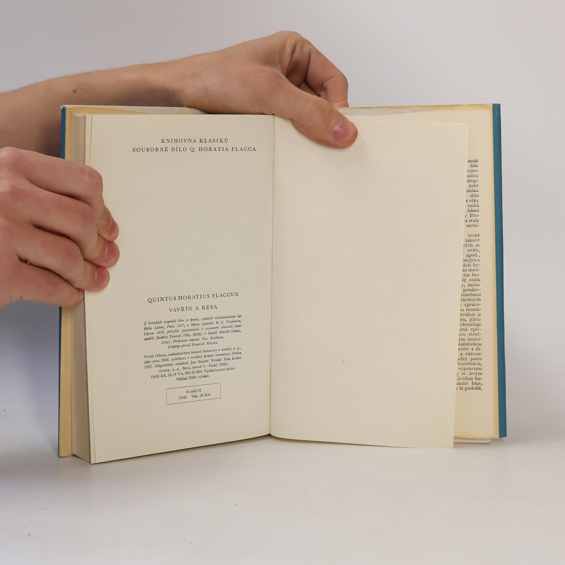 Souborné vydání básnického díla jednoho z největších římských básníků, reprezentanta tzv. zlatého věku římského básnictví, zahrnuje čtyři knihy lyrických Ód, básní oslavujících přátele, vlivné osobnosti, ženu, vlast; příležitostnou báseň Píseň stoletní; dvě knihy útočných Epód; dvě knihy Satir, v nichž se básník dotýká otázek všedních i filosofických, uvažuje o štěstí, přátelství, osudu a slávě a v nichž stíhá obecně lidské slabosti; dvě knihy Listů, v nichž formou filosofické úvahy promlouvá životem poučený a zmoudřelý básník, stoupenec epikurejské filosofie. Překlad je proveden naším systémem přízvučným a je provázen bohatým poznámkovým aparátem a speciálními poznámkami k překladu a metrice básní.