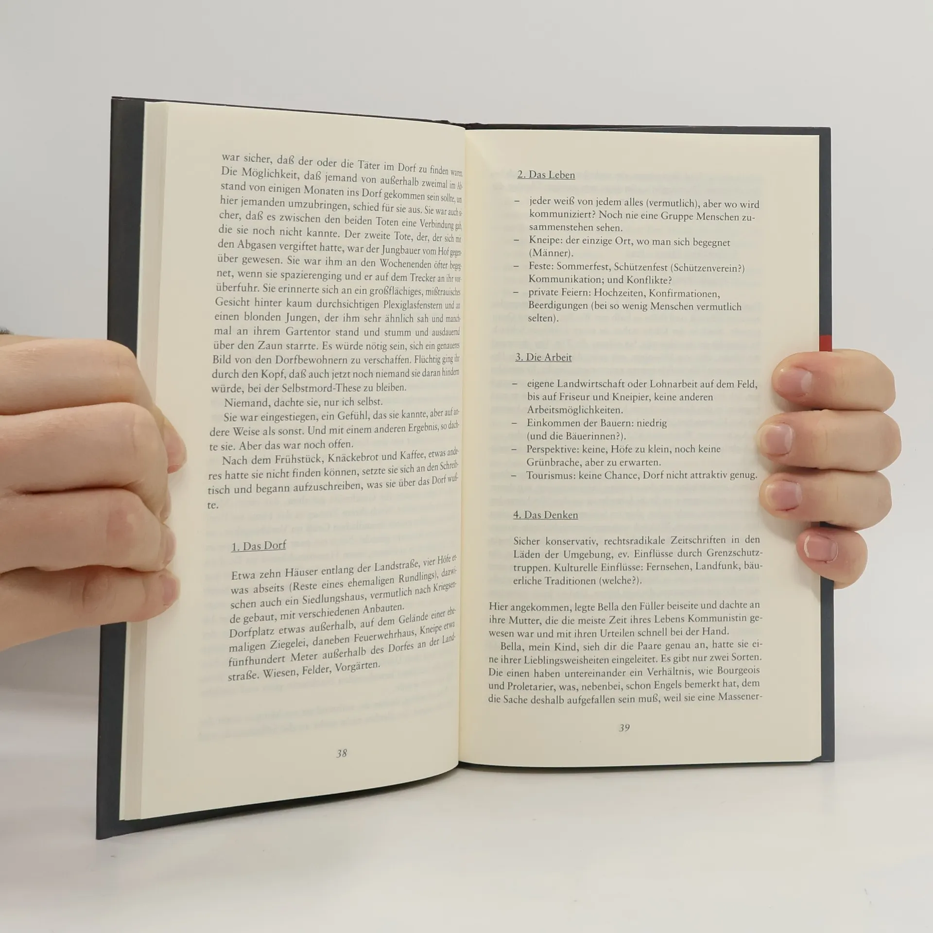 Bella Block von der Hamburger Kripo soll ausgerechnet wegen zweier Selbstmorde in jenem Dorf im Umland ermitteln, in dem sie selbst ein Wochenendhäuschen besitzt. Zunächst sieht es nach einem äußerst angenehmen Job aus, und sie macht es sich erst einmal in ihrem Garten bequem. Doch bald muss sie feststellen, dass der Schein trügt, dass die Dorfbewohner sich gegenseitig bespitzeln und verdächtigen. Und vor allem dämmert ihr, dass die beiden Todesfälle in Wahrheit gar keine Selbstmorde waren. Irgendjemand im Dorf verbirgt ein düsteres Geheimnis ...
