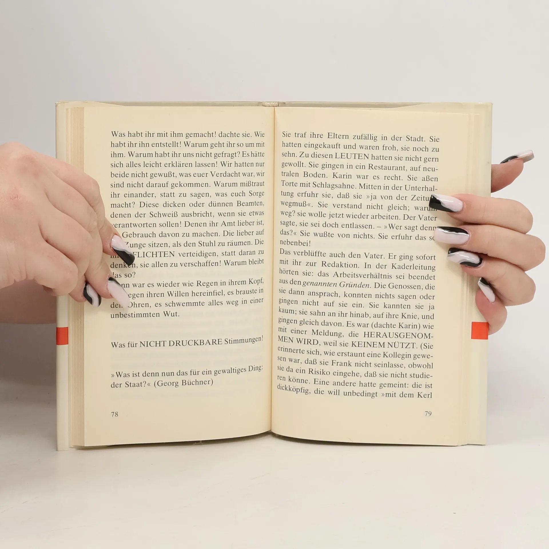 „Das ist es: das Glücksverlangen des einzelnen. Und die, die in Volker Brauns Geschichte nach ihrem Glück suchen, es finden und sich nicht gegen die Zerstörung ihres Glücks durch die Gesellschaft zur Wehr setzen können, sind Karin, die achtzehn-jährige Volontärin an einer Bezirkszeitung, und ihr Freund Frank, ein ehemaliger Rowdy, ein Einzelgänger; er arbeitet als Fernmeldetechniker.“