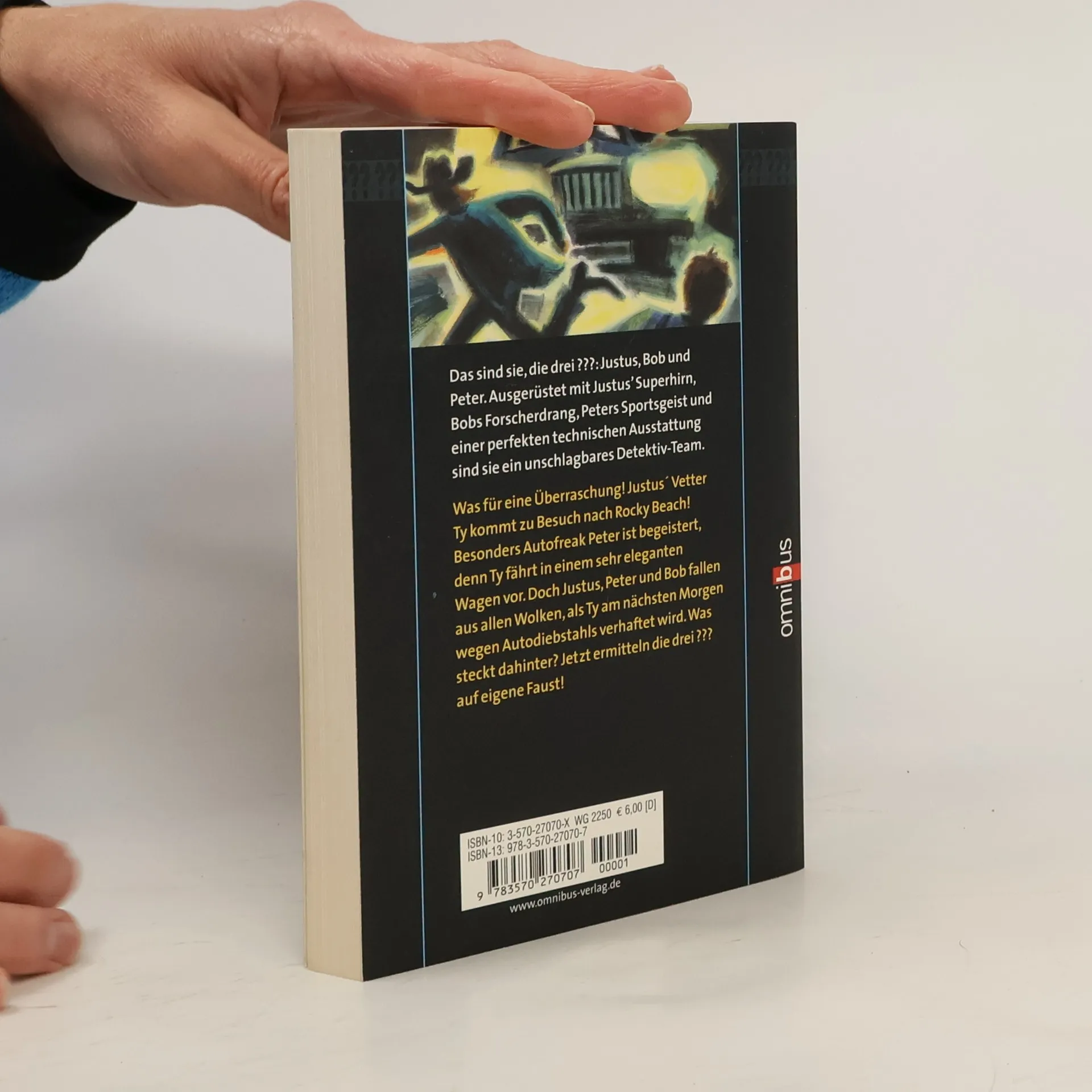 Mit Autos kennt sich Justus' Vetter Ty Cassey einfach phantastisch aus. Ein bißchen zu gut, findet Kommissar Maxim vom Sonderdezernat Autodiebstähle und nimmt den verdächtigen jungen Mann vorläufig fest. Zugegeben, der geniale Mechaniker in den abgerissenen Klamotten, der die meiste Zeit durch die Gegend trampt, wirkt schon etwas ausgeflippt – aber ein Autodieb? Die drei ??? setzen alles daran, Ty's Unschuld zu beweisen. Dabei bekommen sie es mit ausgekochten Profis zu tun, die vor nichts zurückschrecken.