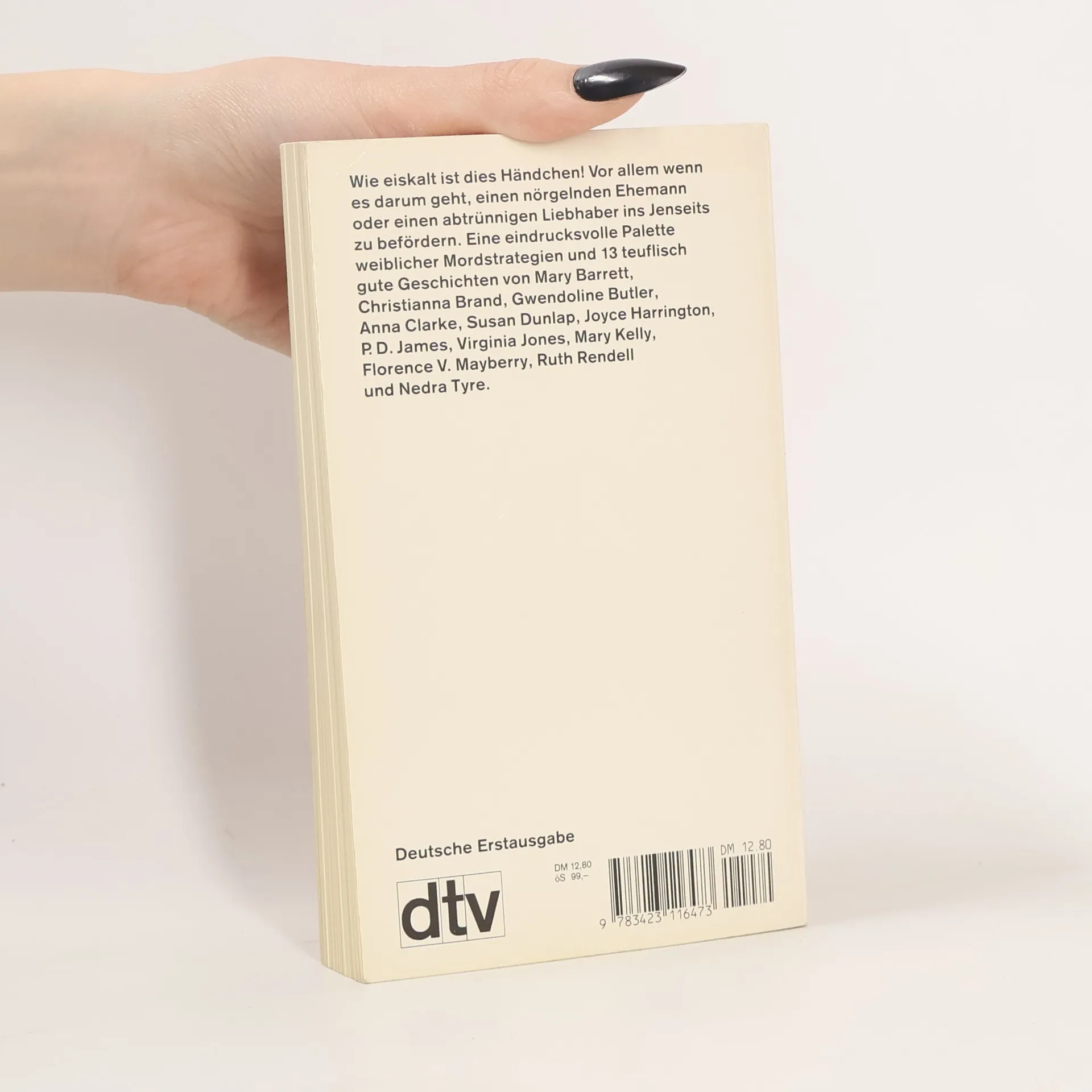 Kriminalgeschichten bekannter Autorinnen. - Enth. u.a.: Harrington, J.: Das Au-pair-Mädchen. Mayberry, F. V.: Eine Frauengeschichte. Glaspell, S.: Stumme Gesänge. Kelly, M.: Leben im Schatten des Todes. Butler, G.: Der Bund der Schwestern. James, P. D.: Das Opfer. Tyre, N.: Ein Mord aus Hilfsbereitschaft. Brand, C.: Aus Fäden werden Stricke.