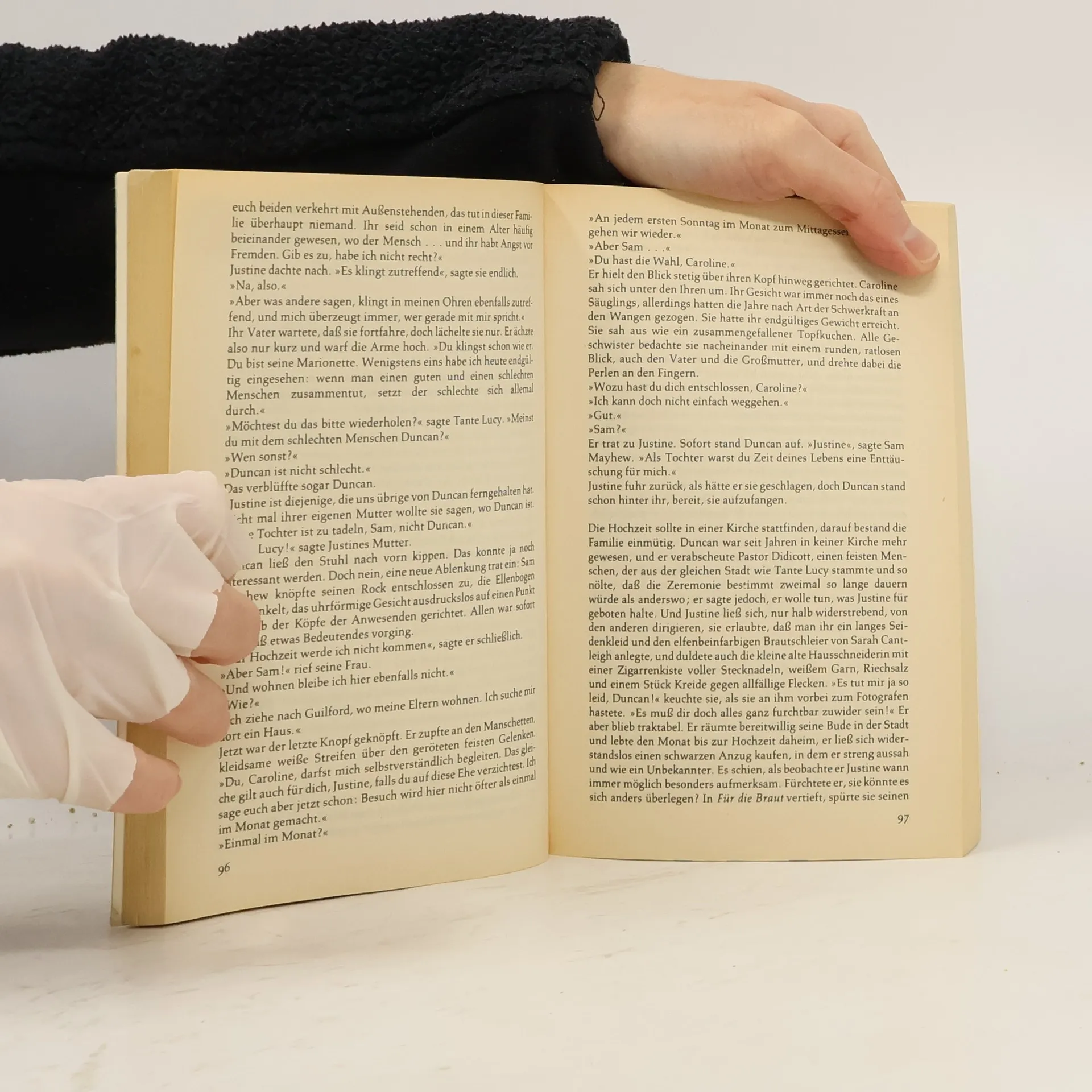 Dies ist die Chronik der Pecks, einer höchst eigenwilligen und wunderbar altmodischen Familie in Baltimore, und die Geschichte des Peckschen Geistes, der die zahlreichen Familienmitglieder aus gut vier Generationen ungeachtet all ihrer merkwürdigen Besonderheiten als unverwechselbare Pecks ausweist und aufs innigste zusammenhält. Dennoch erliegt gelegentlich ein Peck den Verlockungen der Welt und schert aus. So Caleb, ein verträumter junger Mensch, der 1912 plötzlich spurlos verschwindet und sich, von den ersten Klängen des Blues berauscht, nach New Orleans aufmacht. Zwar müssen fast 50 Jahre vergehen, bevor irgend jemand ernsthaft nach ihm zu suchen beginnt, aber um so intensiver sind denn auch die Bemühungen von Halbbruder Daniel, einem inzwischen höchst betagten Herrn, Caleb - und damit ein Stück der eigenen Kindheit - wiederzufinden. Zusammen mit seiner Enkelin Justine, einer hinreißend liebenswürdigen Person mit Hut, reist der alte Herr kreuz und quer durch die Vereinigten Staaten, auf der Suche nach Caleb. Dabei erweisen sich die besonderen Begabungen von Justine als außerordentlich segensreich: Sie kann die Zukunft aus den Karten lesen, sie schließt alle Menschen in ihr Herz, und sie hat irgendwie die Fähigkeit, das Chaos zusammenzuhalten.
