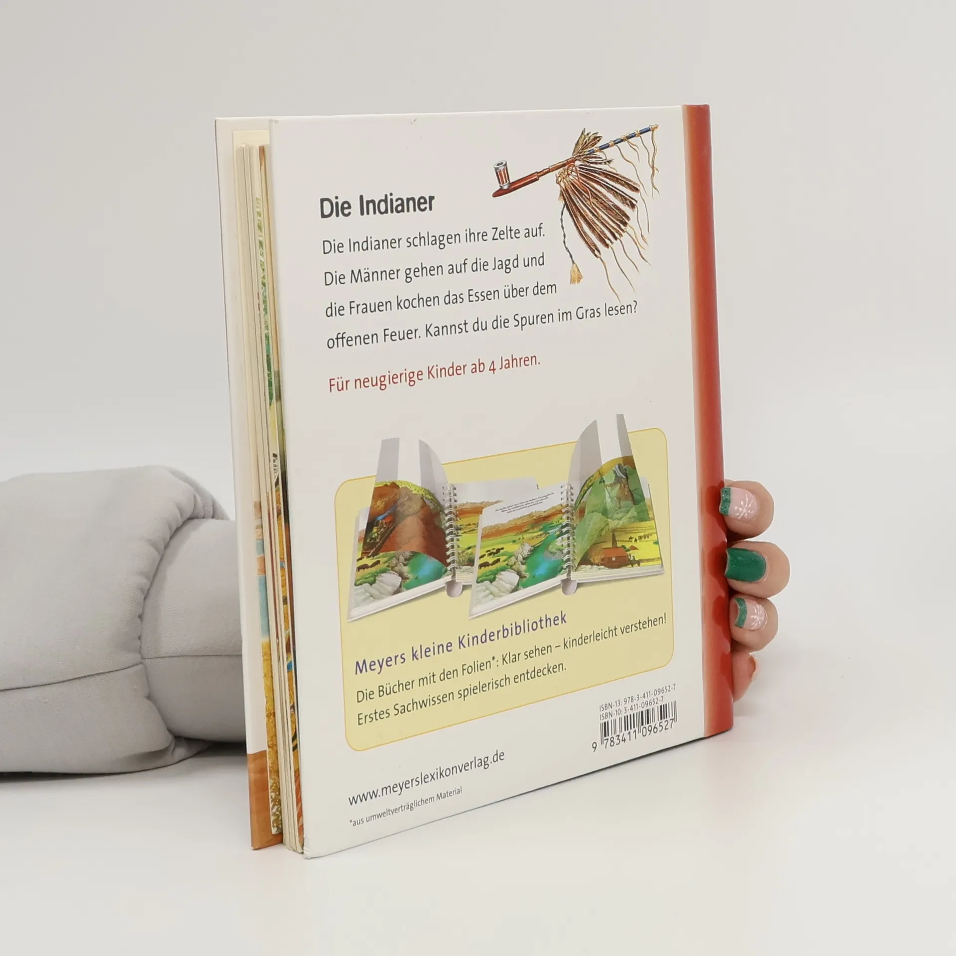 Durch spannende Effekte vermittelt die Bilderbuchreihe „Meyers kleine Kinderbibliothek“ erstes Sachwissen für Kinder ab 3 Jahren. Transparente Folien zeigen beim Umblättern das Innenleben von Dingen, machen Verdecktes sichtbar oder veranschaulichen Veränderungen. In diesem Band lernen die Kleinsten spielerisch, was ein Totempfahl ist, welche Arten von Kopfschmuck es gab und woher die Indianer stammen. Außerdem erfahren Kinder, wo die Indianer lebten, wie sie sich in der Wildnis zurechtfanden und wie sie aus ihrem Land vertrieben wurden.