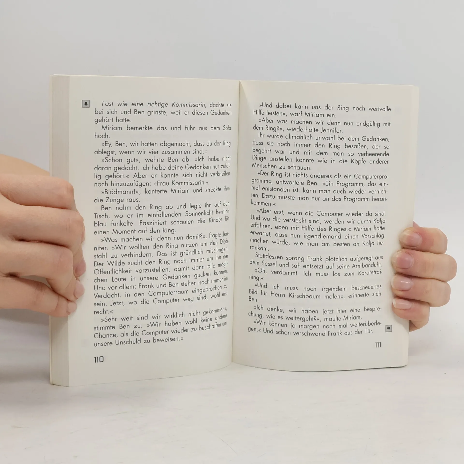 Als Ben einen Ring findet, mit dem man Gedanken lesen kann, ist er zunächst total begeistert. Doch dann gerät diese geniale Erfindung in falsche Hände. Zusammen mit seinen Freunden Frank, Mirjam und Jennifer findet Ben schnell heraus, dass der Ring mittels eines raffinierten Computerchips funktioniert. Doch dann fällt dieses kostbare Stück ausgerechnet Kolja, ihrem Erzfeind, in die Hände. Der führt auch gleich Böses im Schilde und will mit Hilfe des Ringes die Schulcomputer klauen. Kolja den Ring wieder abzuluchsen ist gar nicht so einfach, denn wer Gedanken lesen kann, dem kann man kaum etwas verheimlichen! Als es den Vieren schließlich doch gelingt, machen sie sich auf die Suche nach dem Erfinder dieser genialen, aber gleichzeitig auch äußerst gefährlichen Erfindung. Allerdings nicht um den Ring wieder zurückzugeben, sondern um den Erfinder dazu zu bringen, sein Werk zu vernichten. Ob ihnen das gelingen wird?