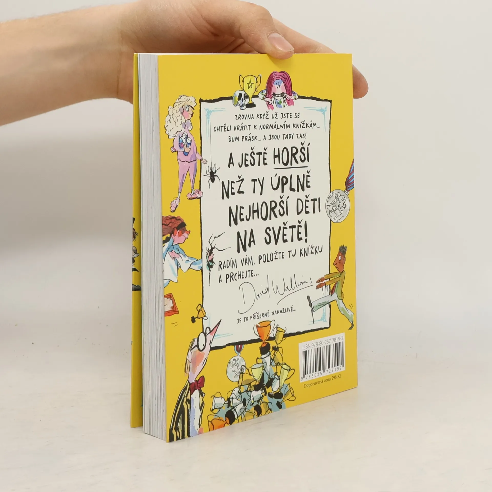 Zdá se, že zásoby dětských prohřešků, ničemností, ba zlořádů ještě zdaleka nejsou vyčerpány. David Walliams je opět s humorem sobě vlastním zmapoval, zapsal a pak je předal Tonymu Rossovi, aby k nim nakreslil spoustu vtipných ilustrací. A ejhle, na světě je nová kniha deseti příběhů o nejhorších dětech. Poznáte Vejtahu Vítězslava, Panovačnou Patricii, Jedovatého Jošta a mnoho dalších. Ale nebojte, i oni dostanou, co si zaslouží!