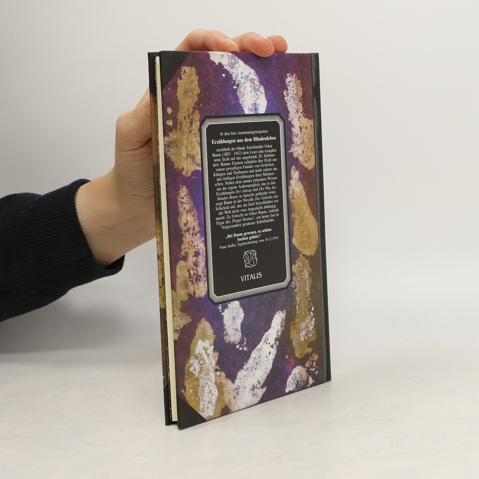 In den zusammengetragenen Erzählungen aus dem Blindenleben erschließt der blinde Schriftsteller Oskar Baum (1883 - 1942) dem Leser eine komplett neue Sicht auf das angehende 20. Jahrhundert: Baums Figuren schöpfen ihre Kraft aus einem gewaltigen Fundus von Gerüchen, Klängen und Tastbarem und nicht zuletzt aus den farbigen Erzählungen ihrer Mitmenschen. Neben dem immer präsenten Wissen um die eigene Andersartigkeit, das in den Erzählungen “Der Antrag” und “Der Weg des blinden Bruno” in Sprache gekleidet wird, zeigt Baum in der Novelle “Der Geliebte” ein Schicksal auf, das ein Sich-Verschließen vor der Welt nicht vom Augenlicht abhängig macht. Zu Unrecht ist Oskar Baum, zentrale Figur des “Prager Kreises”, ein heute fast in Vergessenheit geratener Schriftsteller. “Bei Baum gewesen, so schöne Sachen gehört.” Franz Kafka, Tagebucheintrag vom 19.12.1910