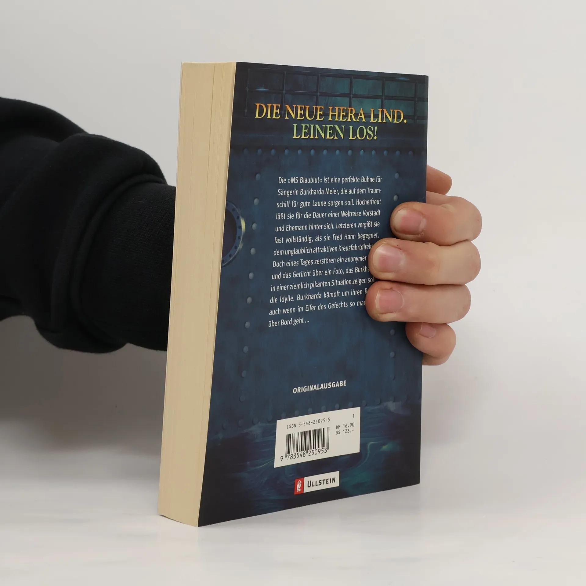 „Die MS Blaublut ist ein Traumschiff. Fünf Sterne, Champagner, Kaviar und eine Reise um die Welt. Burkharda Meier, Vorstadt-Callas aus bügerlicher Ehe, soll als Sängerin an Bord das verwöhnte Publikum unterhalten. Nach kurzer Zeit verliert sie ihr Herz an ein “„Streifenhorn“„: Fred Hahn, den arroganten Kreuzfahrtdirektor. Mit allen Mitteln versucht sie ihm zu gefallen, doch Fred, der Hahn im Korb, spielt mit Burkharda, bis ihre Seele in Fetzen hängt. Frustriert stürzt sie sich ins weltliche Getümmel. Doch das Schiff ist ein Dorf und wie in jedem Dorf herrschen auch hier Neid und Missgunst, enttäuschte Liebe, Hass, Eifersucht und Überdruss. Eines tages taucht ein anonymer Brief auf und das Gerücht über ein Foto, das Burkharda in einer höchst pikanten Situation zeigen soll. Jeder, aber auch wirklich jeder könnte es gewesen sein. Burkharda will um jeden Preis ihren guten Ruf wahren - selbst wenn sie dafür über Leichen gehen muss ... Eine hinreißende Liebesgeschichte, gewürzt mit zehn appetittlichen Morden.“
