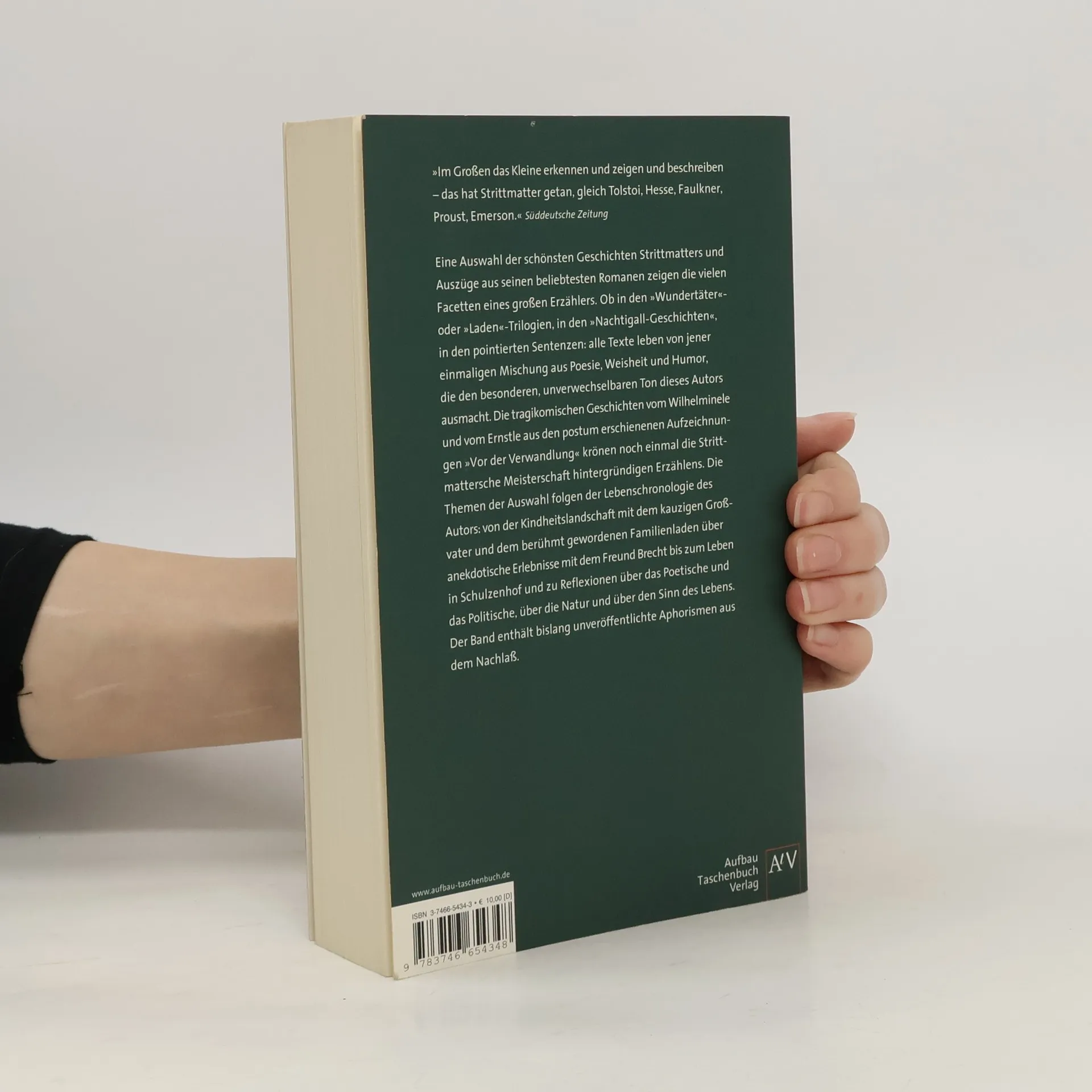 „Im Großen das Kleine erkennen und zeigen und beschreiben - das hat Strittmatter getan, gleich Tolstoi, Hesse, Faulkner, Proust, Emerson.“ Süddeutsche Zeitung Eine Auswahl der schönsten Geschichten Strittmatters und Auszüge aus seinen beliebtesten Romanen zeigen die vielen Facetten eines großen Erzählers. Ob in den „Wundertäter“- oder „Laden“-Trilogien, in den „Nachtigall-Geschichten“, in den pointierten Sentenzen: alle Texte leben von jener einmaligen Mischung aus Poesie, Weisheit und Humor, die den besonderen, unverwechselbaren Ton dieses Autors ausmacht. Die tragikomischen Geschichten vom Wilhelminele und vom Ernstle aus den postum erschienenen Aufzeichnungen „Vor der Verwandlung“ krönen noch einmal die Strittmattersche Meisterschaft hintergründigen Erzählens. Die Themen der Auswahl folgen der Lebenschronologie des Autors: von der Kindheitslandschaft mit dem kauzigen Großvater und dem berühmt gewordenen Familienladen über anekdotische Erlebnisse mit dem Freund Brecht bis zum Leben in Schulzenhof und zu Reflexionen über das Poetische und das Politische, über die Natur und über den Sinn des Lebens. Der Band enthält bislang unveröffentlichte Aphorismen aus dem Nachlaß. Facetten eines großen Erzählers Das opulente Lese-Buch präsentiert Strittmatter als exzellenten Erzähler in jener einmaligen Mischung aus Poesie, Philosophie und Humor, die seinen besonderen Ton ausmacht. Seiner Lebenschronologie folgend, bietet es Auszüge aus den beliebtesten Romanen und eine Auswahl der schönsten Geschichten, Reflexionen und Anekdoten über das Poetische, die Natur und den Sinn des Lebens. „Im Großen das Kleine erkennen und zeigen und beschreiben - das hat Strittmatter getan, gleich Tolstoi, Hesse, Faulkner, Proust, Emerson.“ SZ „Ein gelungener Einstieg in ein meisterhaftes literarisches Lebenswerk.“ Zeitpunkt, Leipzig
