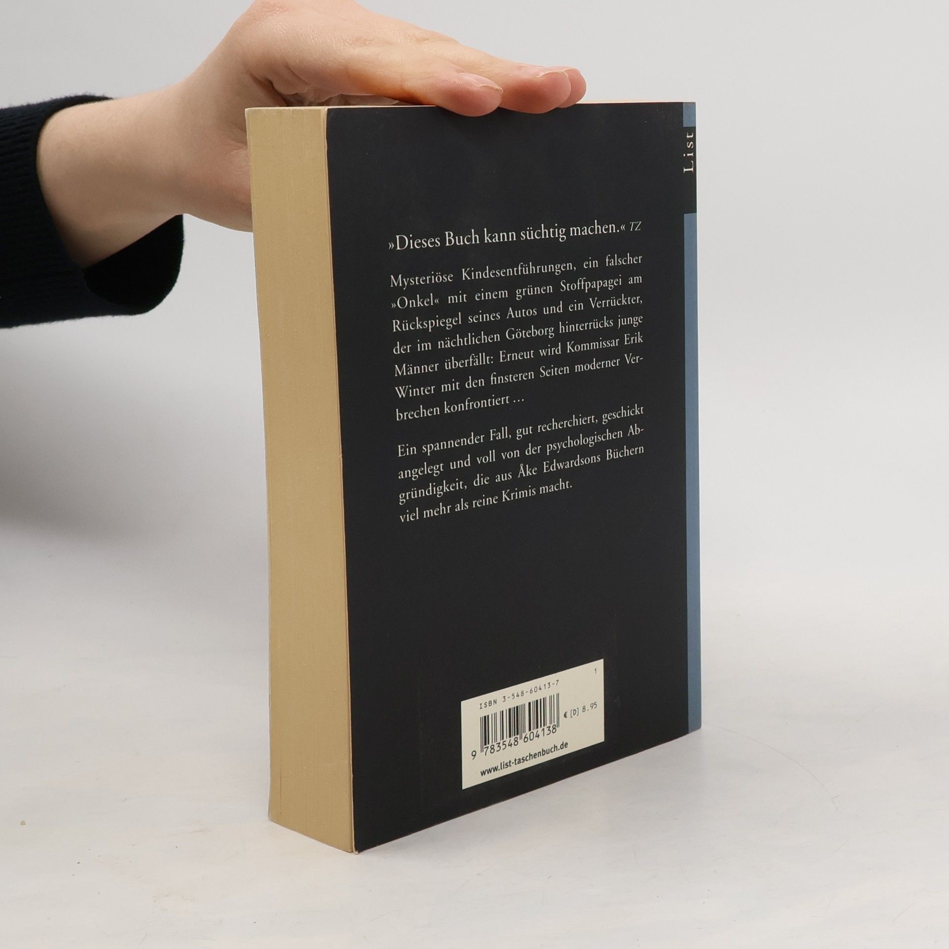 Mysteriöse Kindesentführungen, ein falscher »Onkel« mit einem grünen Stoffpapagei am Rückspiegel seines Autos und ein Verrückter, der im nächtlichen Göteborg hinterrücks junge Männer überfällt: Erneut wird Kommissar Erik Winter mit den finsteren Seiten moderner Verbrechen konfrontiert ... Ein spannender Fall, gut recherchiert, geschickt angelegt und voll von der psychologischen Abgründigkeit, die aus Åke Edwardsons Büchern viel mehr als reine Krimis macht.