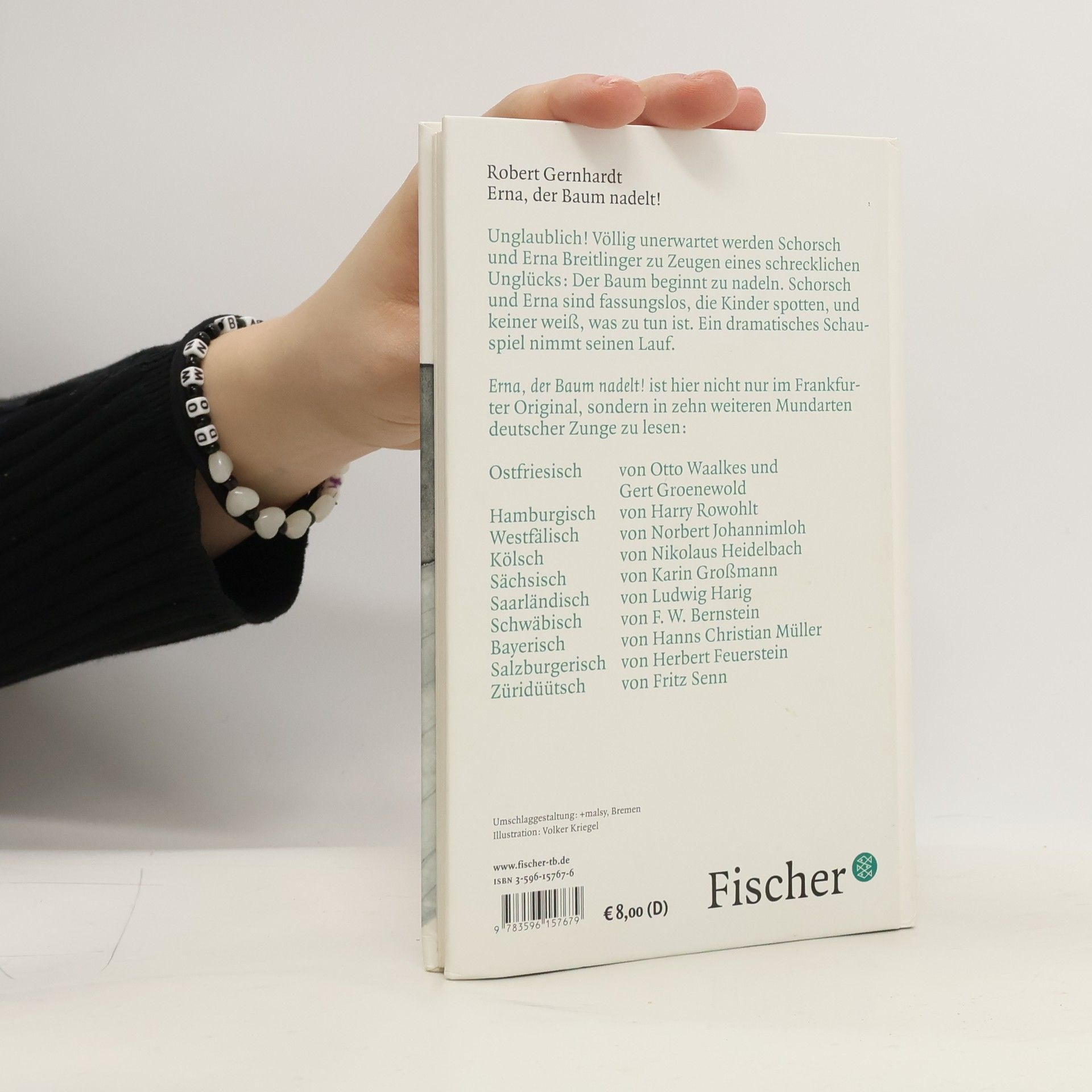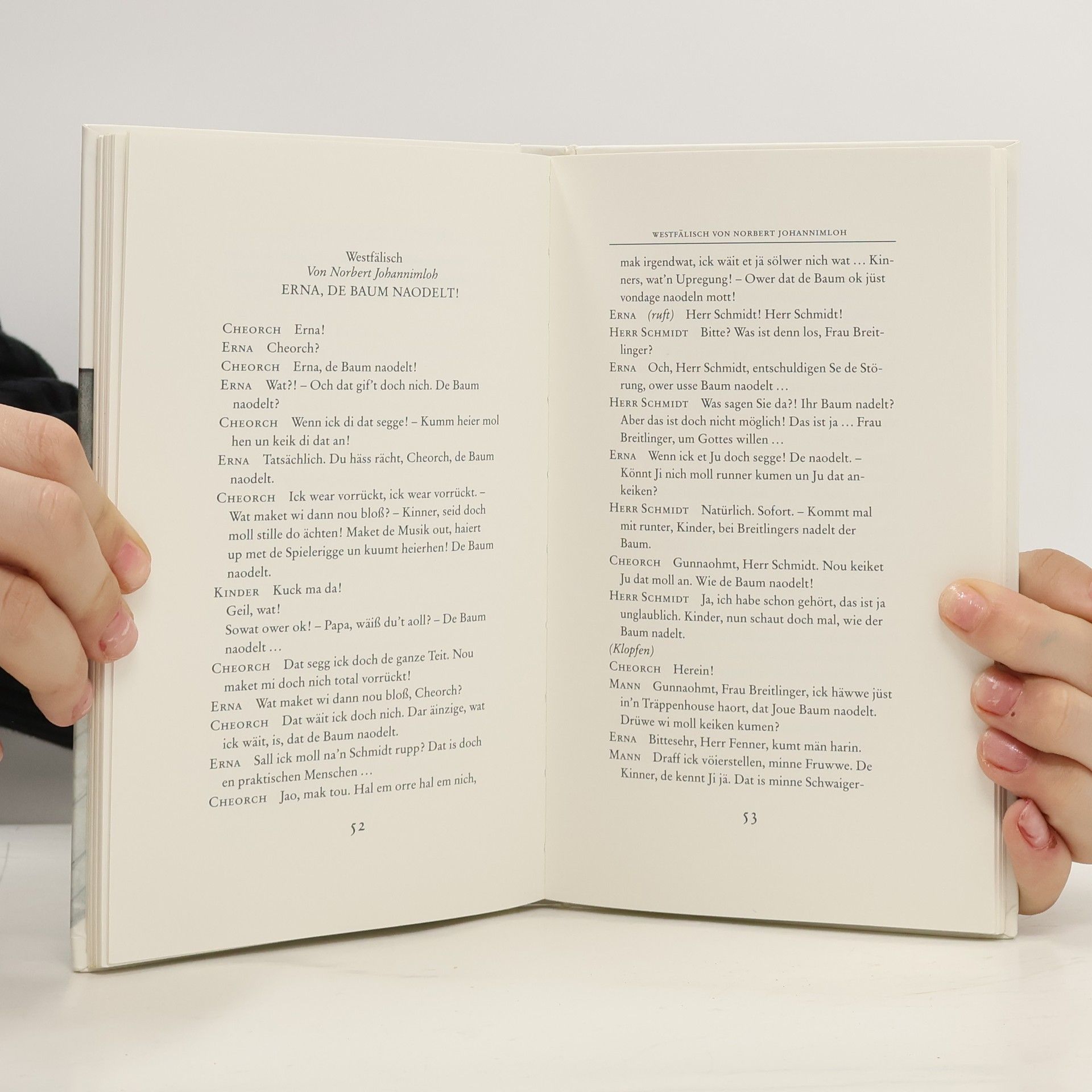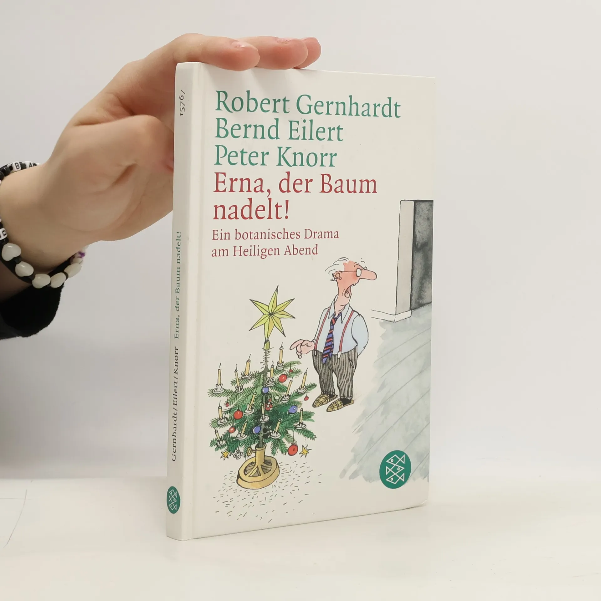 Erna, der Baum nadelt! Ein botanisches Drama am Heiligen Abend. Mit festlichen Zeichnungen von Volker Kriegel Die Mitwirkenden Erna Breitlinger und ihr Mann Schorsch; Kinder Breitlinger; eine Rentnerin; Herr Schmidt, ein Nachbar; Reporter Häussler vom Tageblatt; der Botanik-Professor Dülmen mit seinen Studenten; Passanten