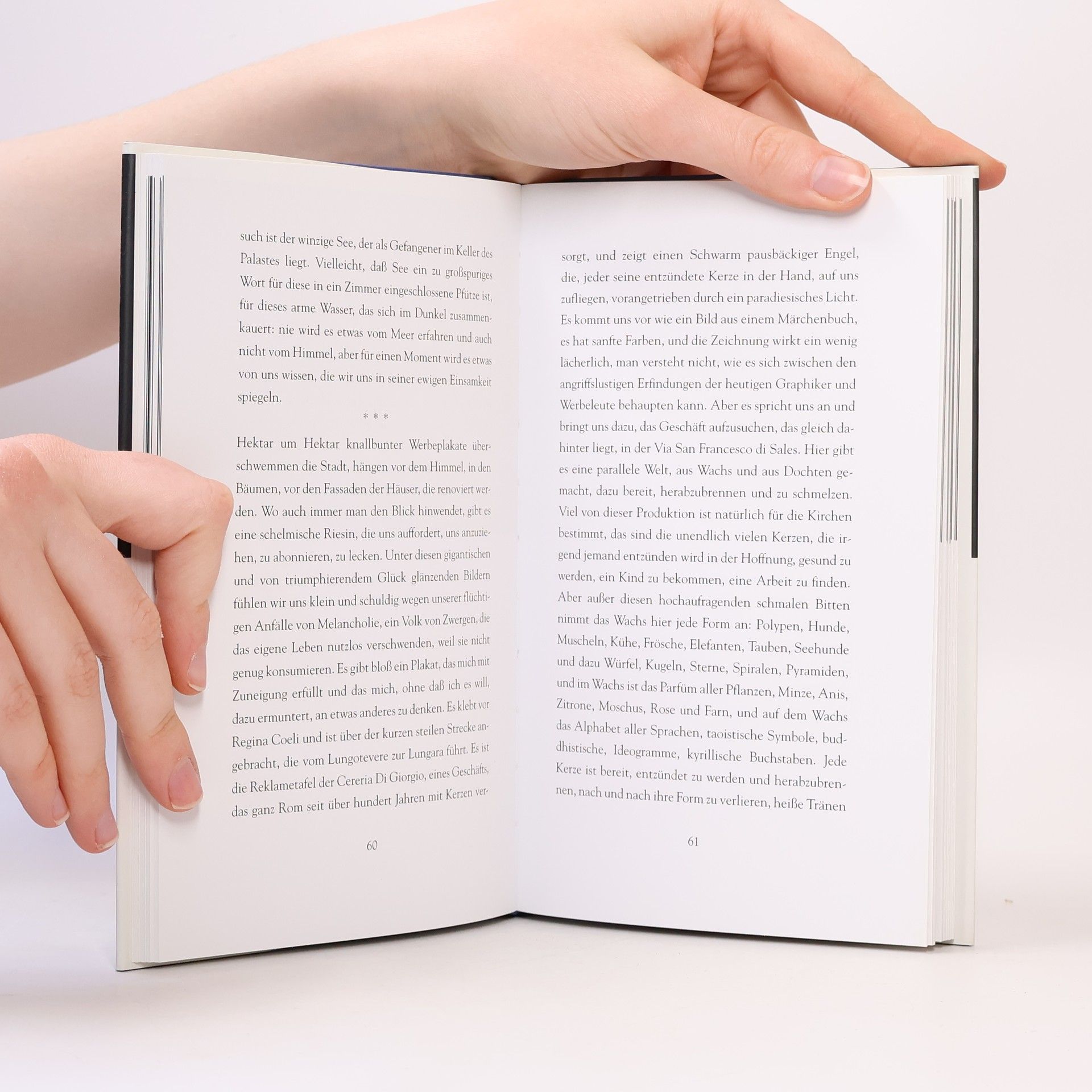 Marco Lodoli, der mit seinen „Inseln in Rom“ Leser und Kritiker gleichermaßen beglückt hat, bietet sich erneut als Führer an durch eine Stadt, deren versteckte Winkel und verborgene Schönheiten oder Kuriositäten unerschöpflich sind. Wir beobachten die berühmten Transsexuellen Roms, in der Nähe von Santa Maria delle Grazie empfiehlt uns Lodoli eine billige Pizzeria, und überhaupt spart er nicht an Tipps, wo man merkwürdige Waren kaufen und gut und preiswert essen kann.