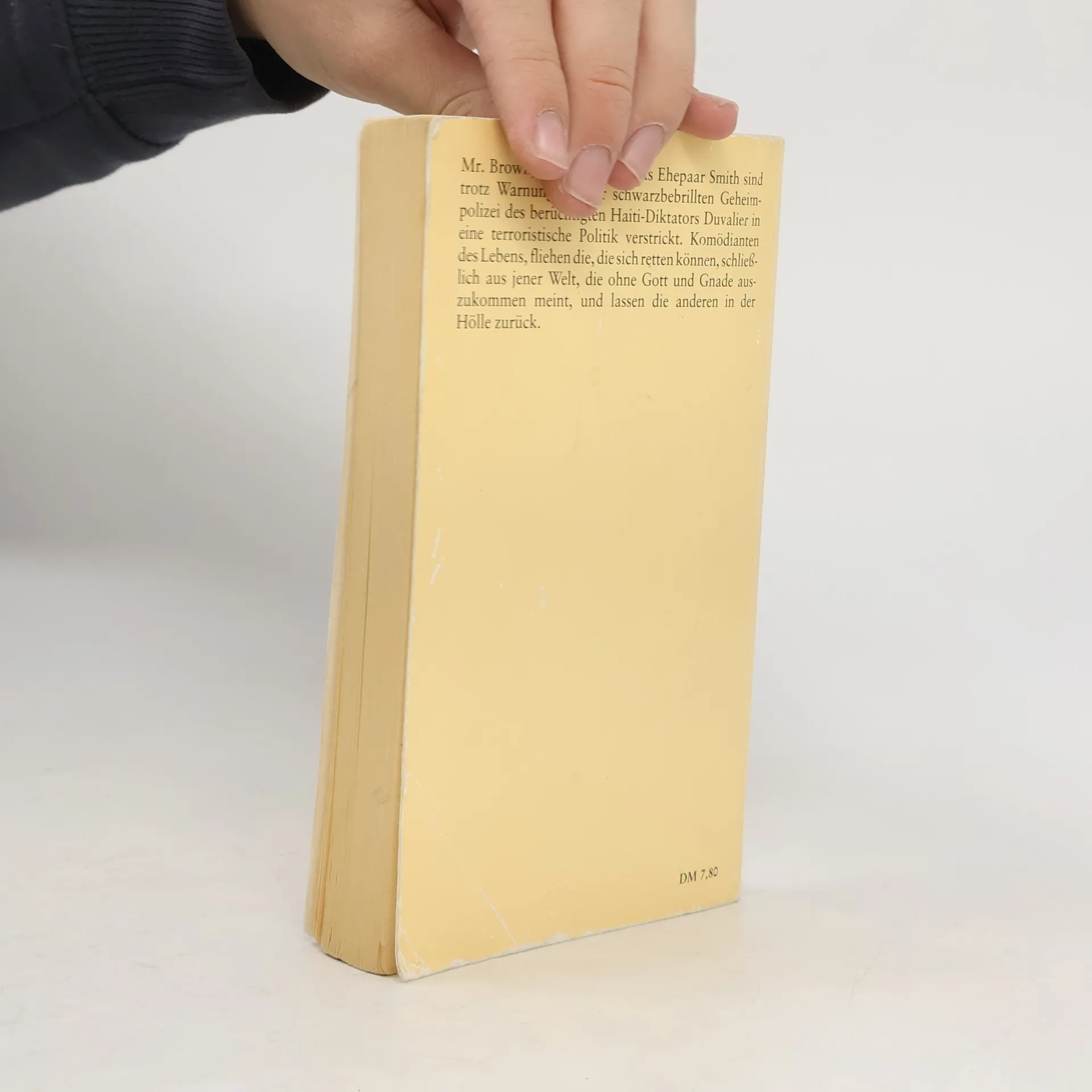 Ein Thriller im Dunstkreis von Bespitzelung und Unterdrückung, von Mord und Rebellion. Mr. Brown, Mr. Jones und das Ehepaar Smith reisen mit der »Medea« nach Haiti, in ein Land, das unter der Schreckensherrschaft des diktatorischen Papa Doc und seiner Mafia steht. Mr. Brown, der Ich-Erzähler, besitzt ein Hotel in Port-au-Prince, das er in New York vergeblich verkaufen wollte. Das Ehepaar Smith will Geld anlegen und nebenbei eine – reichlich naive – Mission erfüllen, nämlich den Vegetarismus propagieren. Mr. Jones' Absichten sind dunkel. Er ist ein Abenteurer und spielt gerne, um seine Kasse aufzufüllen. Und als Mr. Brown zu seinem Hotel kommt, findet er im Swimmingpool eine Leiche: Dr. Philipot, den Wohlfahrtsminister. Wie wird man den Toten unauffällig los, ehe die mafiöse Polizei ihn entdeckt?