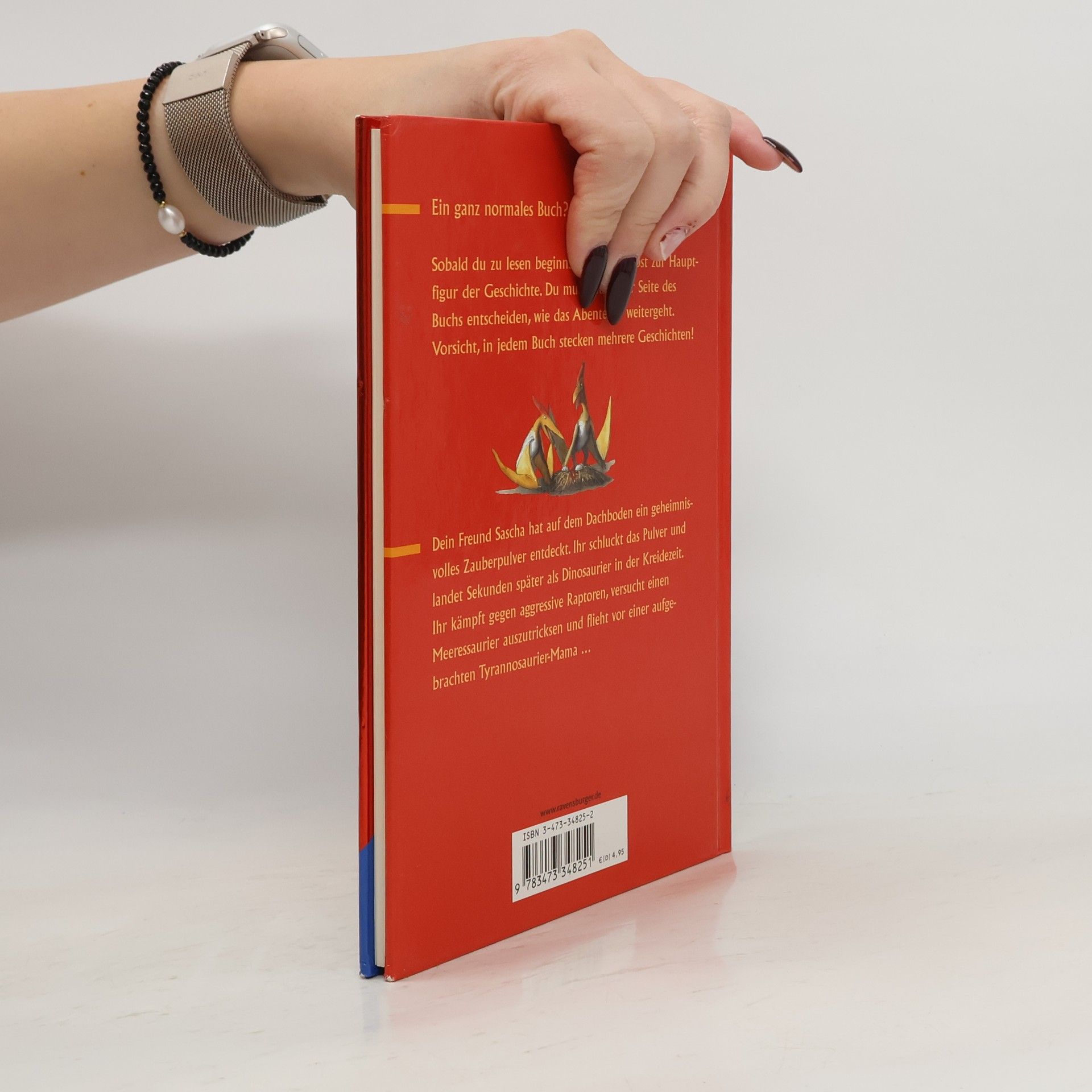 Der Leser entdeckt ein geheimnisvolles Pulver auf dem Dachboden, das ihn in einen Dinosaurier verwandelt und in die Kreidezeit zurückversetzt. Schon bald muss er seine Kräfte mit Raptoren und Meeressauriern messen.