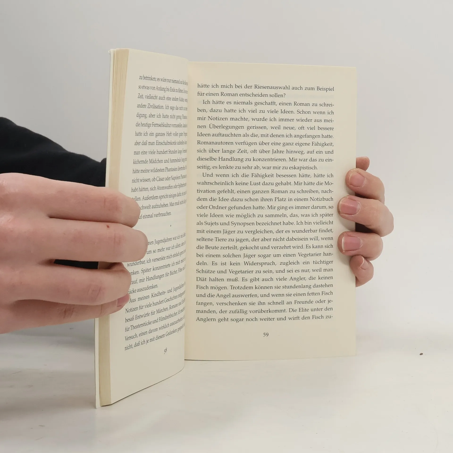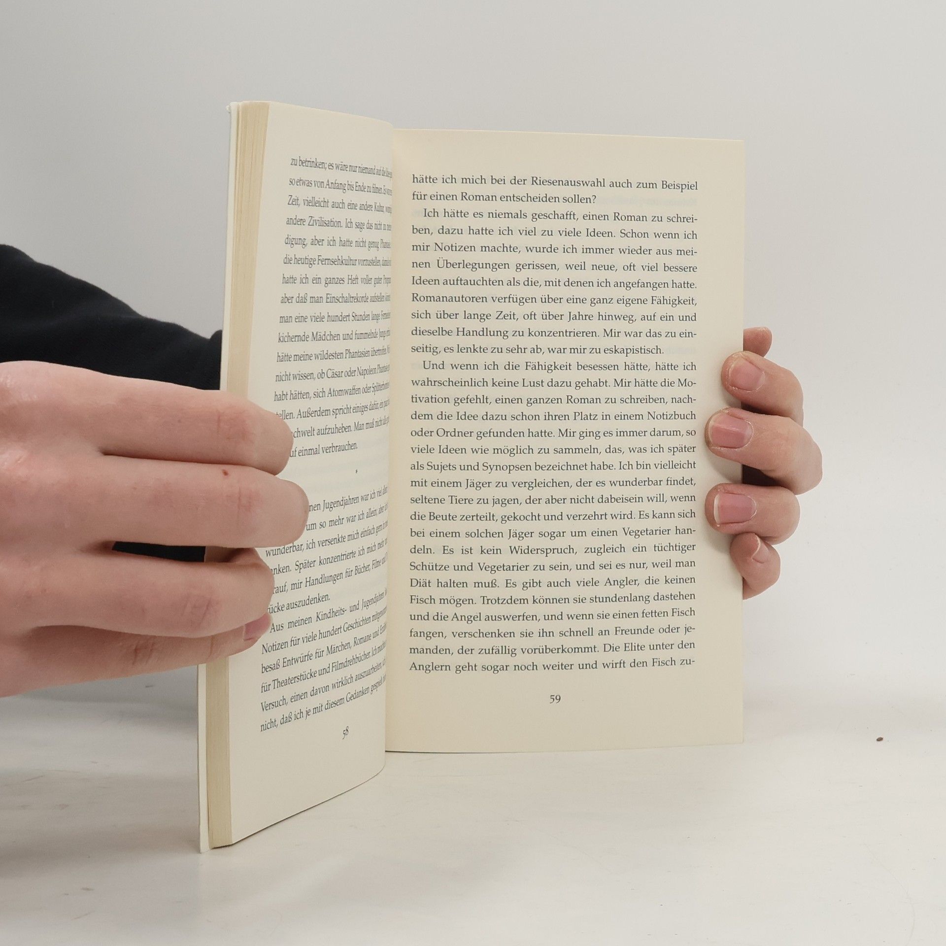 Das Geschäft floriert: Klassenaufsätze gegen Süßigkeiten, später gegen weibliche Zuneigung. Ihm fliegt zu, was vielen Schriftstellern ständig ausgeht: Geschichten. Der Gedanke, selbst Schriftsteller zu werden, erscheint ihm absurd. Es drängt ihn einfach nichts ins Licht der Öffentlichkeit. Und so entscheidet er sich für eine Karriere hinter den Kulissen des Literaturbetriebs. Er wird Geschichtenverkäufer. Die Geschäftsidee ist neu, der Erfolg überwältigend. Seine Kundenkartei reicht vom Gelegenheitsdichter bis zum internationalen Großschriftsteller, doch jeder glaubt, der einzige Kunde des Geschichtenverkäufers zu sein. Eines Tages aber tauchen Gerüchte auf. Von der »Spinne« ist die Rede, einem geheimnisvollen Manipulator ganzer Autorenbiographien. Urplötzlich findet sich der Ideenlieferant in eine Geschichte verstrickt, die von ihm stammen könnte. Doch diesmal ist sie bitterböse Wirklichkeit. Und das Ende liegt keineswegs auf der Hand.