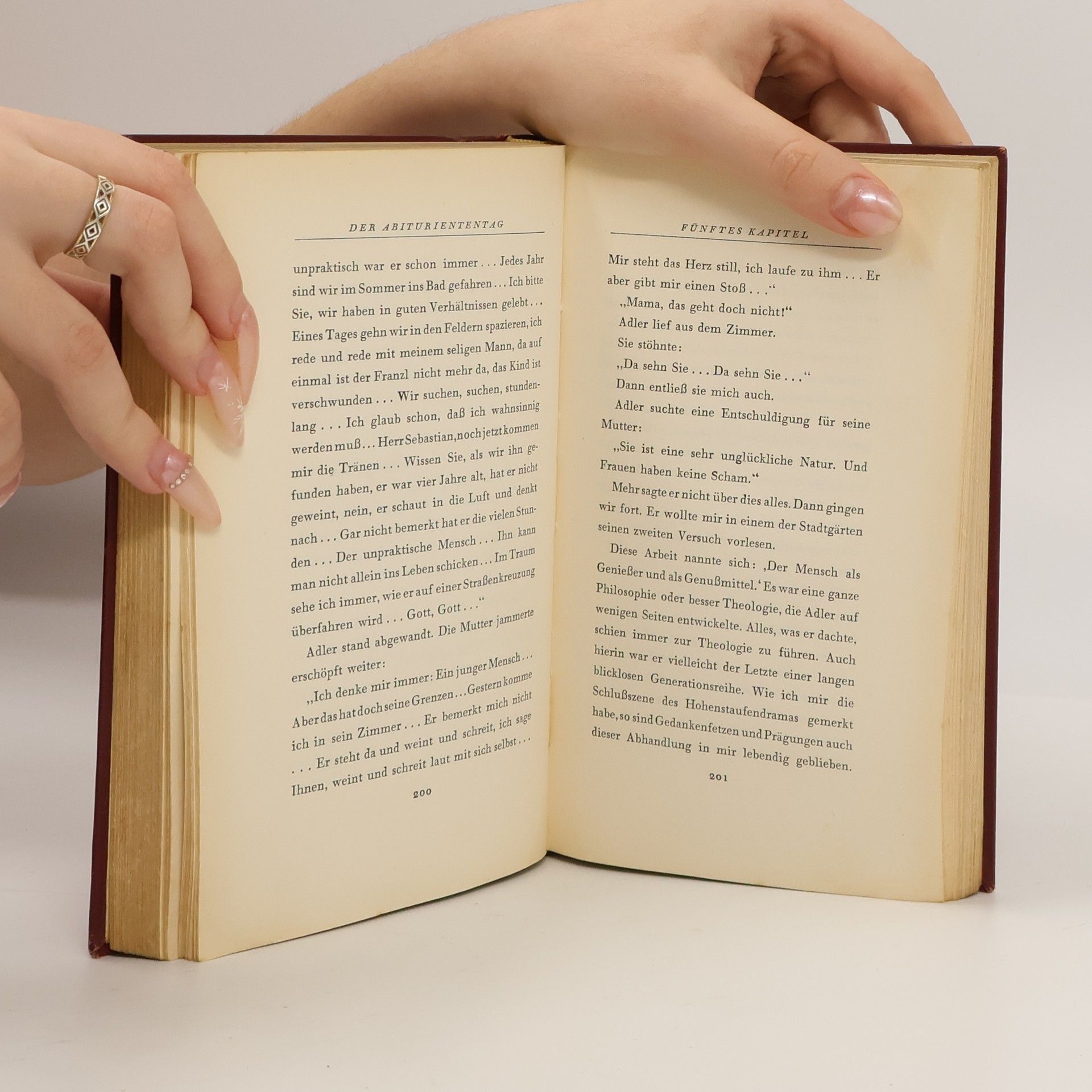 Atmosphärisches und Erfahrungen der eigenen Schulzeit im Roman aufzugreifen und auf diese Weise auch vor sich selbst Rechenschaft abzulegen über sein eigenes Verhalten in dieser Lebensphase, wird nicht selten durch die Begegnung mit alten Freunden angeregt. Franz Werfel traf 1926 mit seinen früheren Klassenkameraden Willy Haas und Ernst Deutsch zusammen - das mag Inspirationsmoment für diese ›Geschichte einer Jugendschuld‹ gewesen sein. Die Erlebnisse von damals im Klassenzimmer, auf dem Tennisplatz, bei Gartenfesten, in Nachtcafés, bei spiritistischen Séancen wurden wach und suchten ihren Ausdruck. Vor allem aber die Auseinandersetzung mit dem Individuum. So entwickelte sich im ›Abituriententag‹ aus Abenteuerlust, Freiheitsdrang und übermütiger Unart zunächst ein Kräftemessen Ernst Sebastians, des Erzählers, mit dem intellektuell frühreifen Klassenbesten Franz Adler; aber Eifersucht mischt sich hinein und Neid und lassen Sebastians und seiner Kamera-den Sich-erproben für den psychisch und physisch immer unterlegeneren Adler zu Erniedrigung und Qual werden, um schließlich in ein immer stärker ins Verbrecherische gleitendes Bekämpfen und Verführen zu münden. Ernst Sebastian muß sich jetzt bei einer assoziativen Konfrontation im Bewußtsein seiner Jugendverfehlungen, vor allem seiner Schuld, selbst gestehen: »Meine Aufgabe ist es, mich zu verhören.«