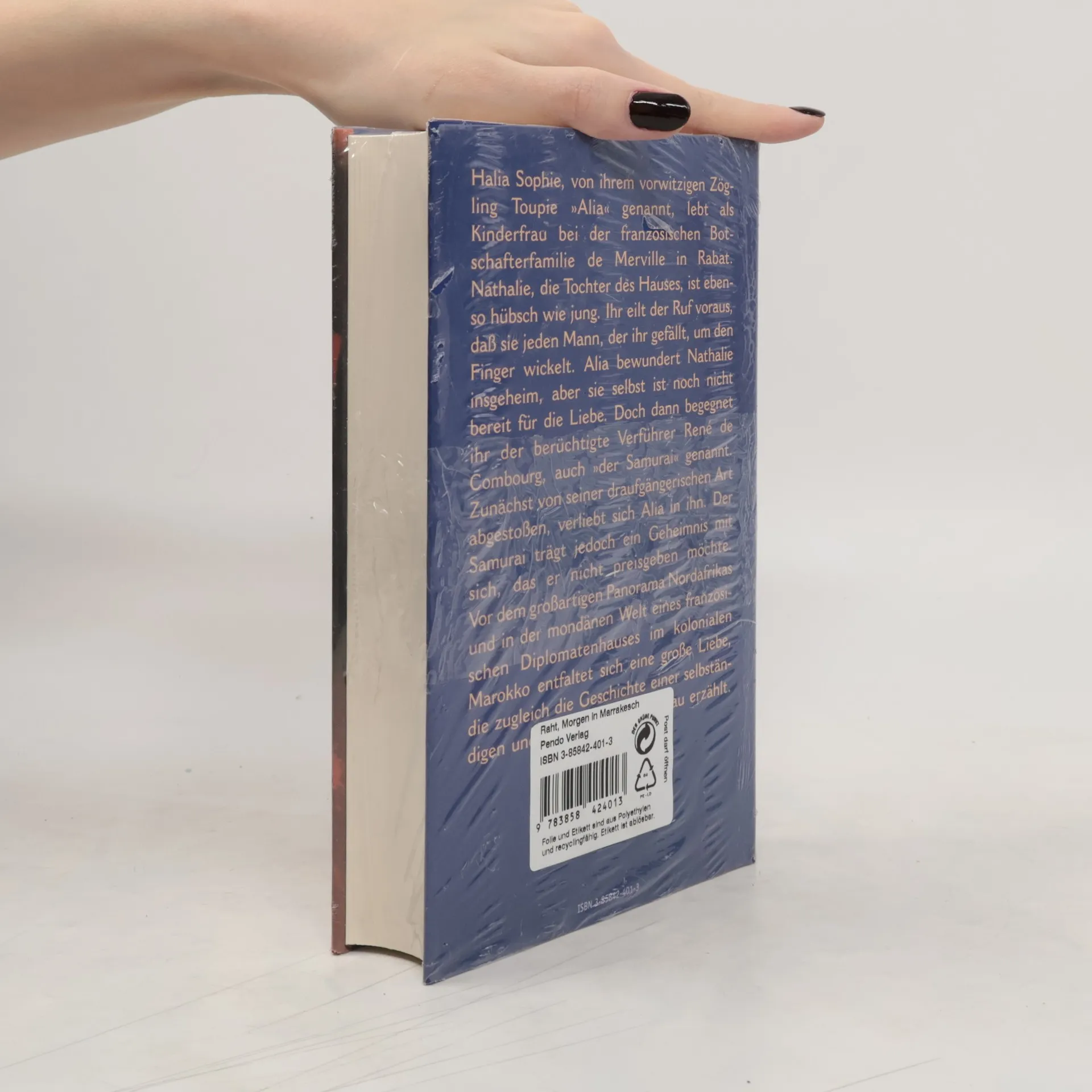 Halia Sophie, von ihrem vorwitzigen Zögling Toupie "Alia" genannt, lebt als Kinderfrau bei der französischen Botschafterfamilie de Merville in Rabat. Nathalie, die Tochter des Hauses, ist ebenso hübsch wie jung. Ihr eilt der Ruf voraus, daß sie jeden Mann, der ihr gefällt, um den Finger wickelt. Alia bewundert Nathalie insgeheim, aber sie selbst ist noch nicht bereit für die Liebe. Doch dann begegnet ihr der berüchtigte Verführer Rene de Combourg, auch "der Samurai" genannt, Nachfahre des großen Abenteurers und Dichters Francois Rene Chauteaubriand. Zunächst von seiner draufgängerischen Art abgestoßen, verliebt sich Alia in ihn. Der Samurai trägt jedoch ein Geheimnis mit sich, das er nicht preisgeben möchte. Alia geht nach Deutschland zurück und baut sich ihr eigenes Leben auf. Schließlich führen ihre Wege sie auch nach New York und Paris, doch die Erinnerungen an ihre erste Liebe und an Marokko lassen sie nicht los. Tione Raht versteht es meisterhaft, uns die Geschichte eine r selbstbewußten Frau und ihrer großen Leidenschaft miterleben zu lassen.