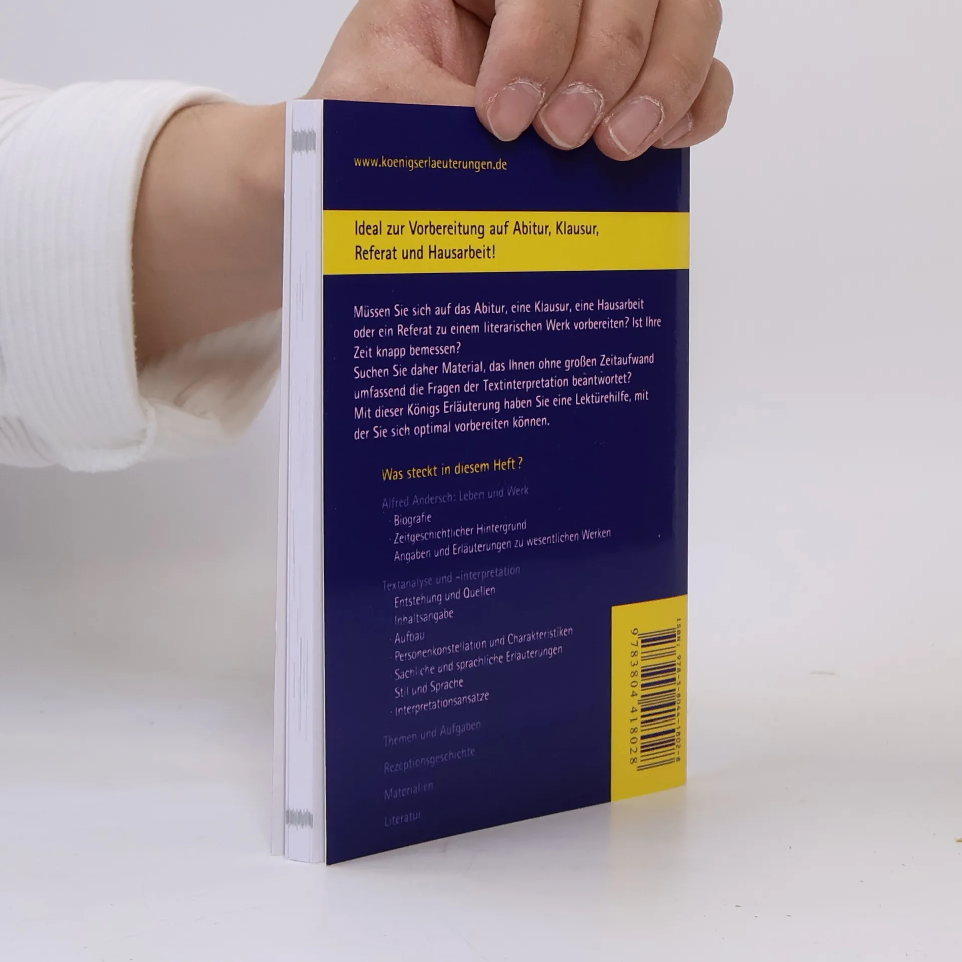 Vorwort 1. Autor: Leben und Werk 1.1 Biografie 1.2 Zeitgeschichtlicher Hintergrund 1.3 Angaben und Erläuterungen zu wesentlichen Werken 2. Textanalyse und -interpretation 2.1 Entstehung und Quellen 2.2 Inhaltsangabe 2.3 Aufbau 2.4 Personenkonstellation und Charakteristiken 2.5 Sachliche und sprachliche Erläuterungen 2.6 Stil und Sprache 2.7 Interpretationsansätze 3. Themen und Aufgaben 4. Rezeptionsgeschichte 5. Materialien Literatur