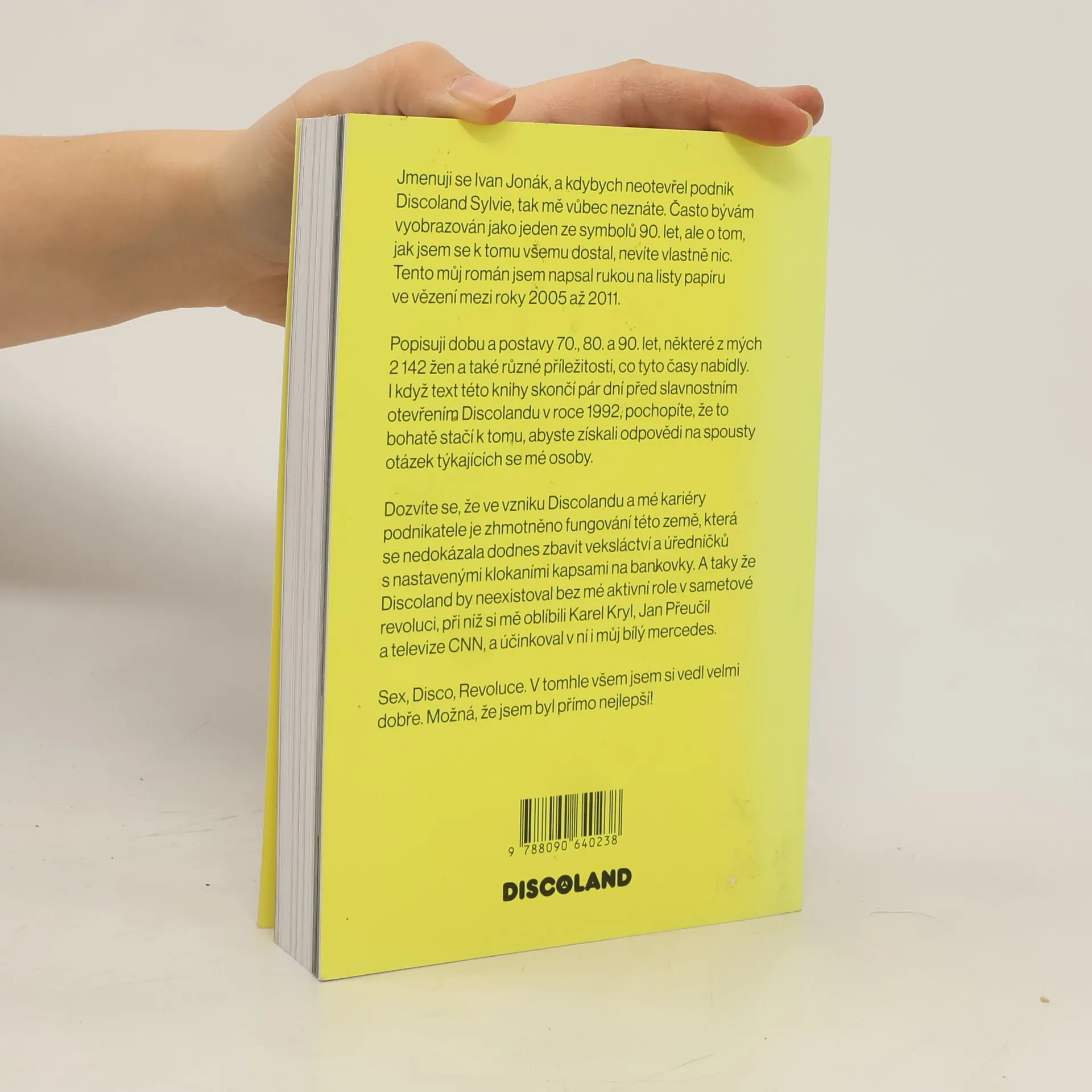 Rukopis Ivana Jonáka vznikal mezi lety 2005 a 2011 během jeho věznění za nájemnou vraždu manželky. V knize, nazvané Jmenuji se Ivan Jonák, se představuje nejen jako provozovatel legendárního Discolandu Sylvie, ale také jako symbol divokých 90. let a bouřlivého počátku podnikání v Česku. Vypráví svůj příběh plný absurdit a nečekaných zvratů, který sahá do 70., 80. a 90. let, a popisuje postavy i příležitosti, které formovaly jeho život. I když kniha končí krátce před otevřením Discolandu v roce 1992, nabízí mnoho odpovědí na otázky týkající se Jonákovy osoby a odhaluje, jak sex, politika a podnikání ovlivňovaly tehdejší společnost. Vypráví o tom, jak se tato „pološílená země“ nedokázala zbavit veksláctví a úředníků s kapsami nastavenými na úplatky, a zdůrazňuje svou roli během sametové revoluce, kdy se spřátelil s Karlem Krylem a jeho bílý mercedes byl svědkem historických událostí. Sex, disco a revoluce – v tomhle všem Jonák exceloval.