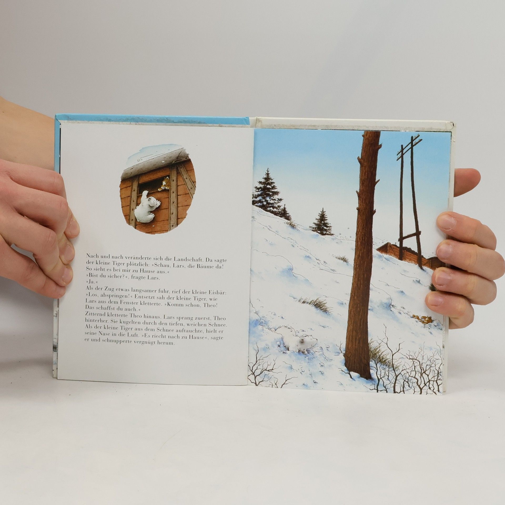 Lars, der kleine Eisbär, trifft unerwartet auf Theo, den kleinen Sibirischen Tiger. Der ist – weit weg von seinen Eltern – völlig verzweifelt. Lars tröstet ihn und hilft ihm den Heimweg finden. Zuerst reisen sie versteckt in einem Güterwagen, später irren sie zu Fuß in einem Schneesturm durch große Wälder. Sie überqueren Flüsse und Schluchten, sind froh, dass ihnen eine Schnee-Eule weiterhilft, und reiten auch ein Stück Weg auf einem Kamel.
