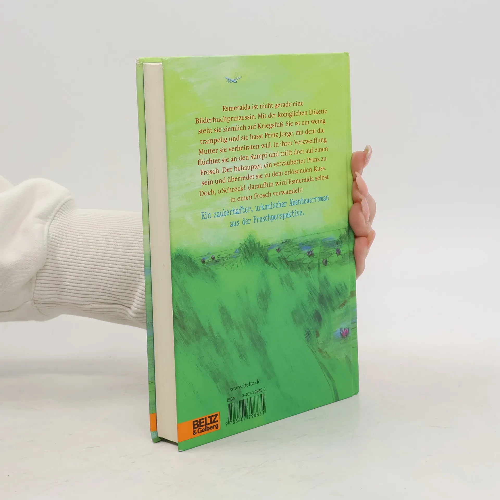 Ein märchenhafter Debütroman, aus der Froschperspektive erzählt: Die abenteuerliche, urkomische Geschichte einer verzauberten Prinzessin. Esmeralda ist nicht gerade das, was man sich unter einer Idealprinzessin vorstellt. Mit der königlichen Etikette steht sie ziemlich auf Kriegsfuß. Sie ist ein wenig trampelig, ihr Lachen klingt eher wie das Wiehern eines Esels als wie süßes Glöckchengeläut und sie hasst Prinz Jorge, mit dem die Mutter sie verheiraten will. In ihrer Verzweiflung flüchtet sie zum nahegelegenen Sumpf und trifft dort auf einen Frosch. Der gibt vor, ein verzauberter Prinz zu sein und überredet Esmeralda zu dem erlösenden Kuss. Doch - o Schreck! - der Plan schlägt fehl: Nicht Frosch Eadric wird in einen Menschen zurückverwandelt, sondern Esmeralda in einen Frosch! Quak! Damit beginnt nun ein wahrhaft tierisches Abenteuer. Unterstützt von einer überraschend hilfsbereiten Schlange und einer liebenswerten, aber etwas flattrigen Fledermaus machen sich die beiden auf die spannende Suche nach dem Ursprung des Zaubers. Und Esmeralda findet auf dieser Entdeckungsreise nicht nur Freunde und die Liebe, sondern vor allem auch das Vertrauen in sich selbst.