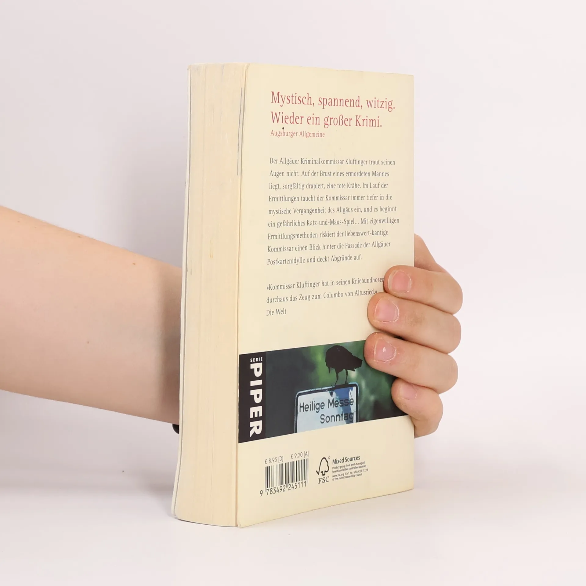 Der Allgäuer Kriminalkommissar Kluftinger traut seinen Augen nicht: Auf der Brust eines toten Mannes in einem Wald bei Kempten liegt, sorgfältig drapiert, eine tote Krähe. Im Lauf der Ermittlungen taucht der Kommissar immer tiefer in die mystische Vergangenheit des Allgäus ein, und es beginnt ein Katz-und-Maus-Spiel mit dem Mörder, bei dem die Zeit gegen ihn arbeitet. Denn alle Zeichen sprechen dafür, dass das Morden weitergeht … Mit eigenwilligen Ermittlungsmethoden riskiert der liebenswert-kantige Kommissar einen Blick hinter die Fassade der Allgäuer Postkartenidylle und deckt Abgründe auf.