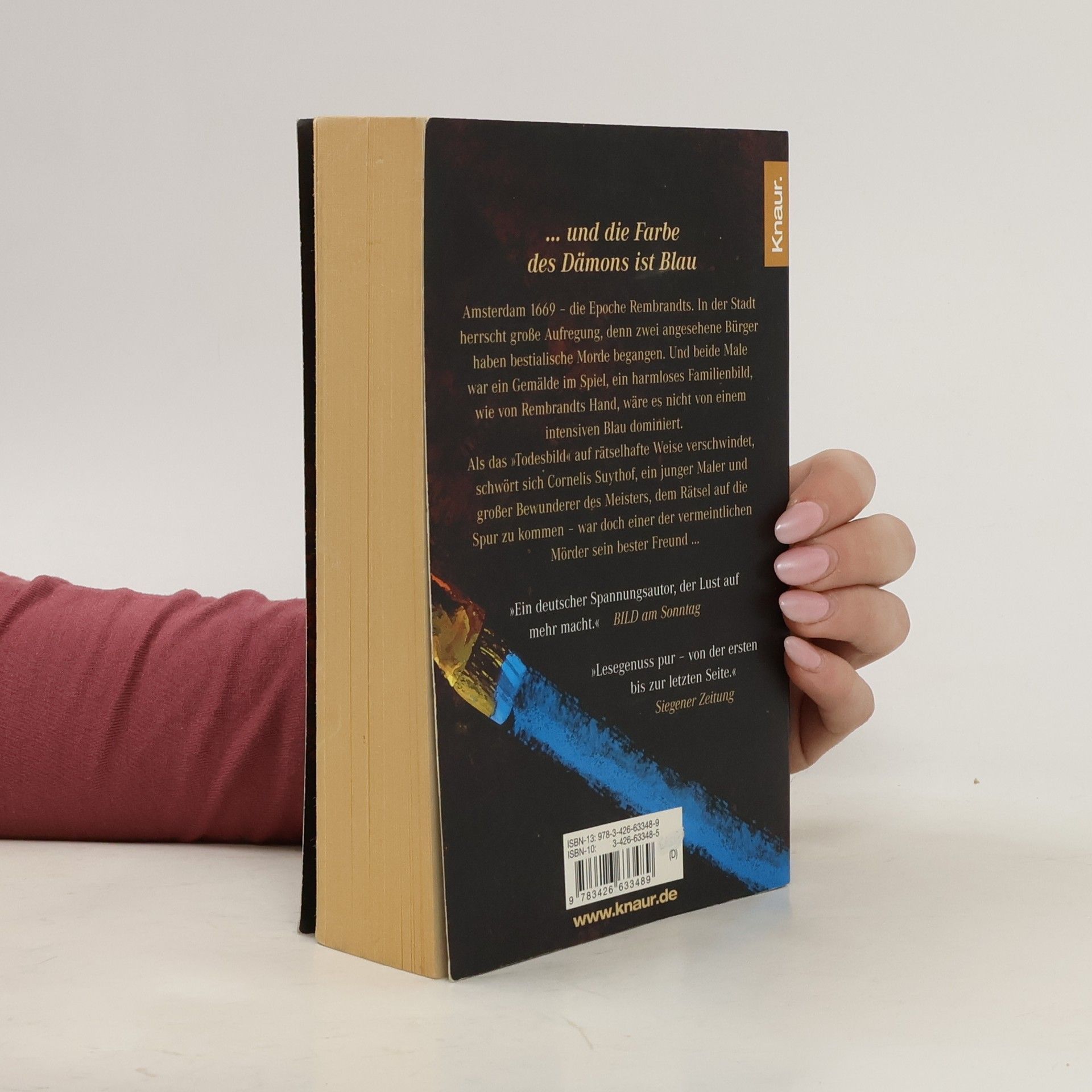 Amsterdam 1669. Es ist die Epoche Rembrandts. In der Stadt herrscht große Aufregung, denn zwei angesehene Bürger haben bestialische Morde begangen. Und beide Male war ein Gemälde im Spiel – ein harmloses Familienbild, wie von Rembrandts Hand, wäre es nicht von einem intensiven Blau dominiert. Als das ›Todesbild‹ auf rätselhafte Weise verschwindet, schwört sich Cornelis Suythof, ein junger Maler und großer Bewunderer des Meisters, dem Rätsel auf die Spur zu kommen – war doch einer der vermeintlichen Mörder sein bester Freund …
