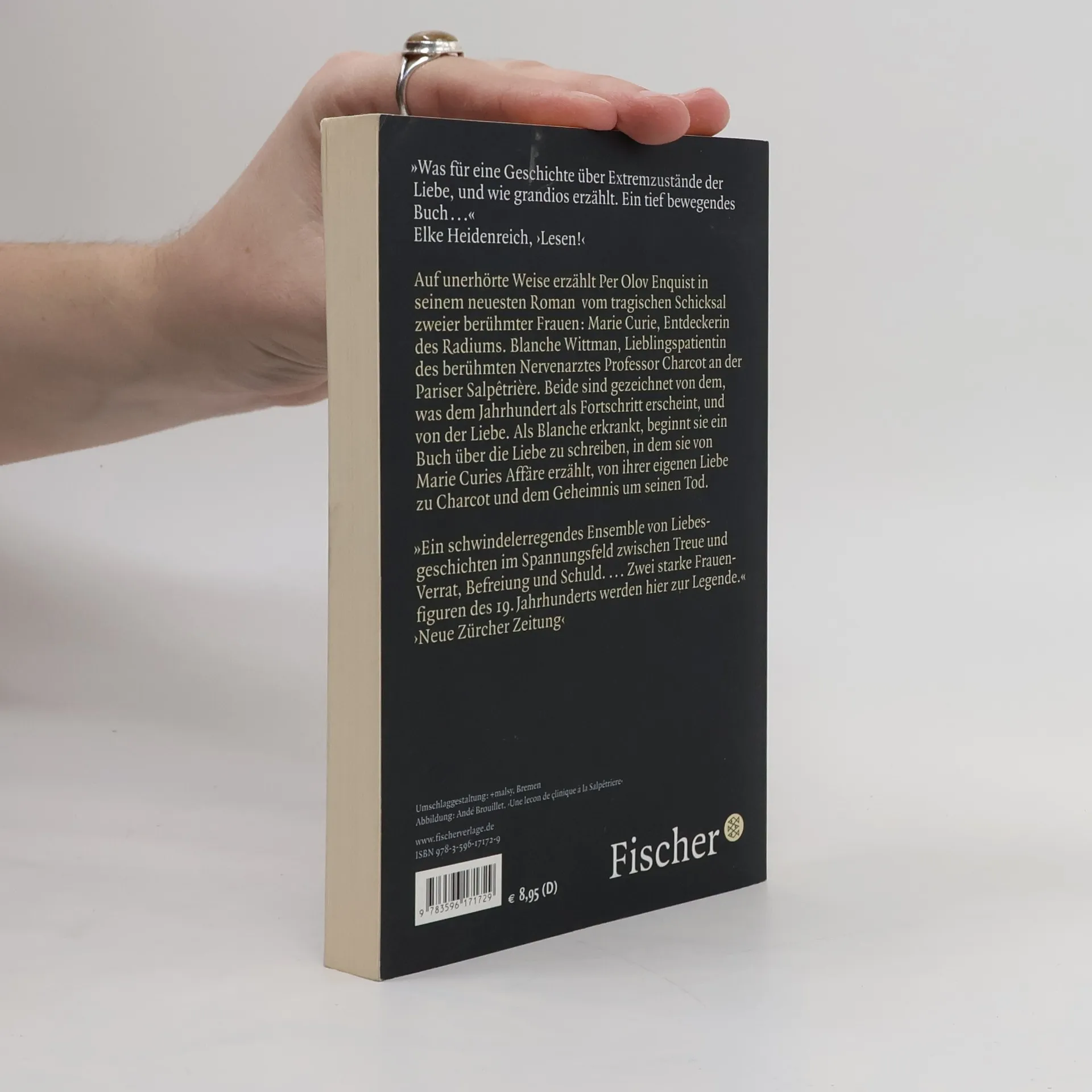 Auf unerhörte Weise erzählt Per Olov Enquist in seinem neuesten Roman vom tragischen Schicksal zweier berühmter Frauen: Marie Curie, Entdeckerin des Radiums. Blanche Wittman, Lieblingspatientin des berühmten Nervenarztes Professor Charcot an der Pariser Salpêtrière. Beide sind gezeichnet von dem, was dem Jahrhundert als Fortschritt erscheint, und von der Liebe. Als Blanche erkrankt, beginnt sie ein Buch über die Liebe zu schreiben, in dem sie von Marie Curies Affären erzählt, von ihrer eigenen Liebe zu Charcot und dem Geheimnis um seinen Tod.