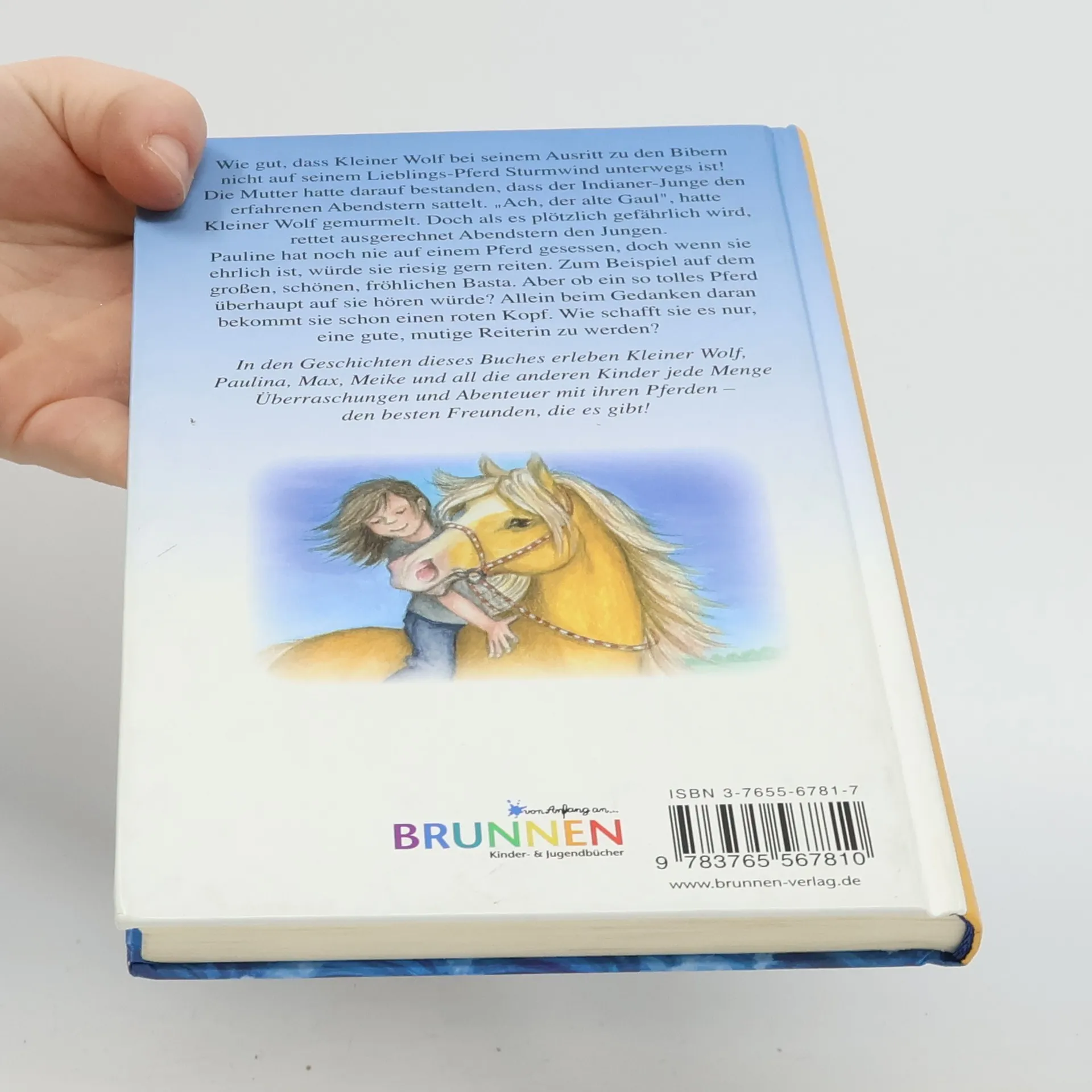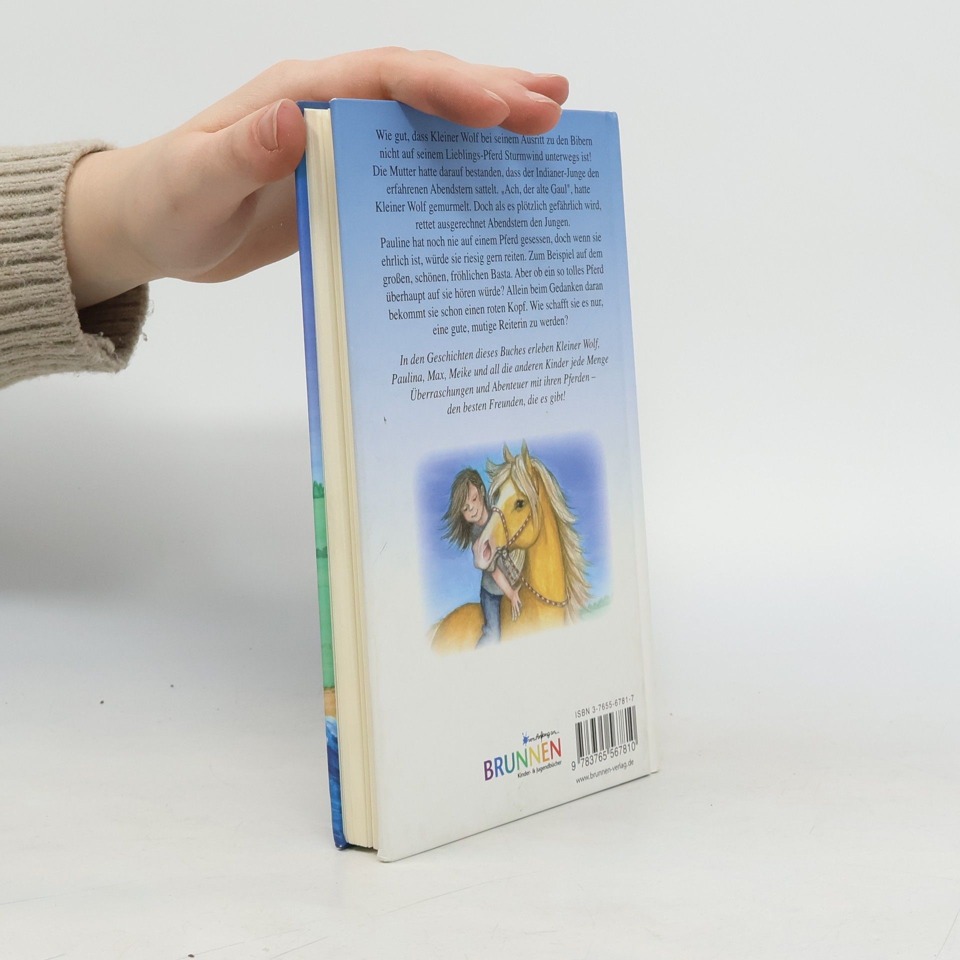 Wie gut, dass Kleiner Wolf bei seinem Ausritt zu den Bibern nicht auf seinem Lieblings-Pferd Sturmwind unterwegs ist! Die Mutter hatte darauf bestanden, dass der Indianer-Junge den erfahrenen Abendstern sattelt. „Ach, der alte Gaul“, hatte Kleiner Wolf gemurmelt. Doch als es plötzlich gefährlich wird, rettet ausgerechnet Abendstern den Jungen… In den Geschichten dieses Buches erleben Kleiner Wolf, Pauline, Max, Maike und all die anderen Kinder jede Menge Überraschungen und Abenteuer mit ihren Pferden – den besten Freunden, die es gibt! Aus dem Inhalt: Marliese Arold: Mein bester Freund Wolfram Hänel: Lotta und Max Elke-Theda Hellmann: Das kleine Pony Aika Klaus-Peter Wolf: Basta und Paulines Bombe Tina Zang: Ein Urlaub mit Überraschungen und andere Geschichten