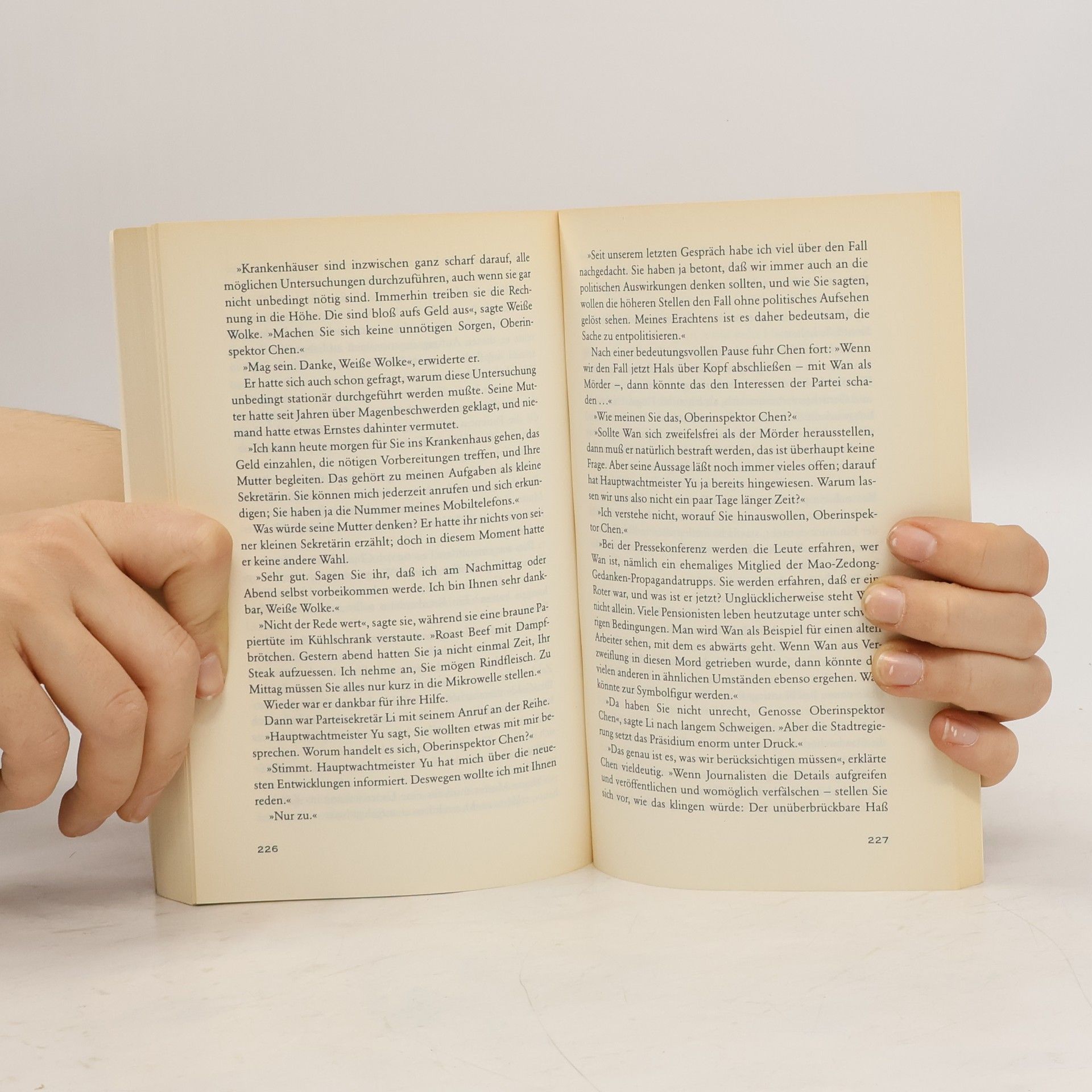 Oberinspektor Chen nutzt seinen ersten Urlaub seit drei Jahren nicht zur Erholung, sondern um einen Werbeprospekt ins Englische zu übersetzen. Unternehmer Gu möchte amerikanische Investoren für ein lukratives Projekt gewinnen: eine Shopping-Mall hinter den traditionellen Shikumen-Häusern, die der wohlhabenden Mittelschicht dienen soll. Doch kurz nach Beginn des Auftrags wird eine Frau in einem dieser Häuser ermordet. Die Umstände deuten darauf hin, dass der Täter unter den Hausbewohnern zu finden ist, da das Gebäude nachts abgesperrt ist. Die ermordete Yin, eine ehemalige Rotgardistin, war bei vielen unbeliebt. Chen wird misstrauisch, als die Partei eine schnelle Lösung des Falls fordert, da die Frau als Dissidentin galt. Sie hatte den verachteten Dichter Yang geliebt und nach seinem Tod einen umstrittenen Roman veröffentlicht. Zudem wird das Zimmer der Schriftstellerin vom Geheimdienst durchsucht. Während Hauptwachmeister Yu die Hausbewohner befragt, verstricken sich diese in Widersprüche. Der Nachbarschaftspolizist verdächtigt nacheinander verschiedene Personen. Yus Frau entdeckt währenddessen den Roman der Ermordeten und gibt Chen damit einen literarischen Hinweis, der ihn auf eine neue Spur führt.