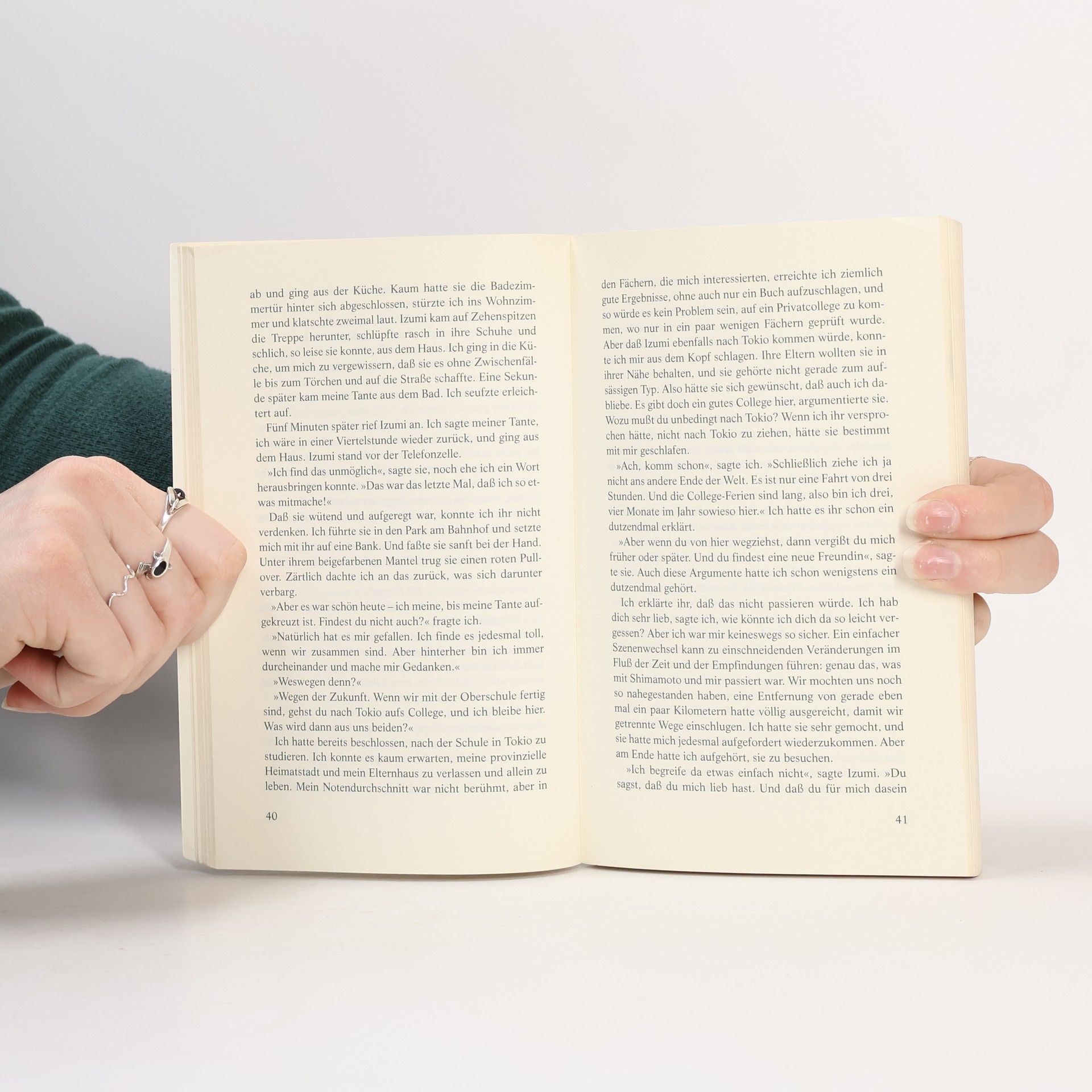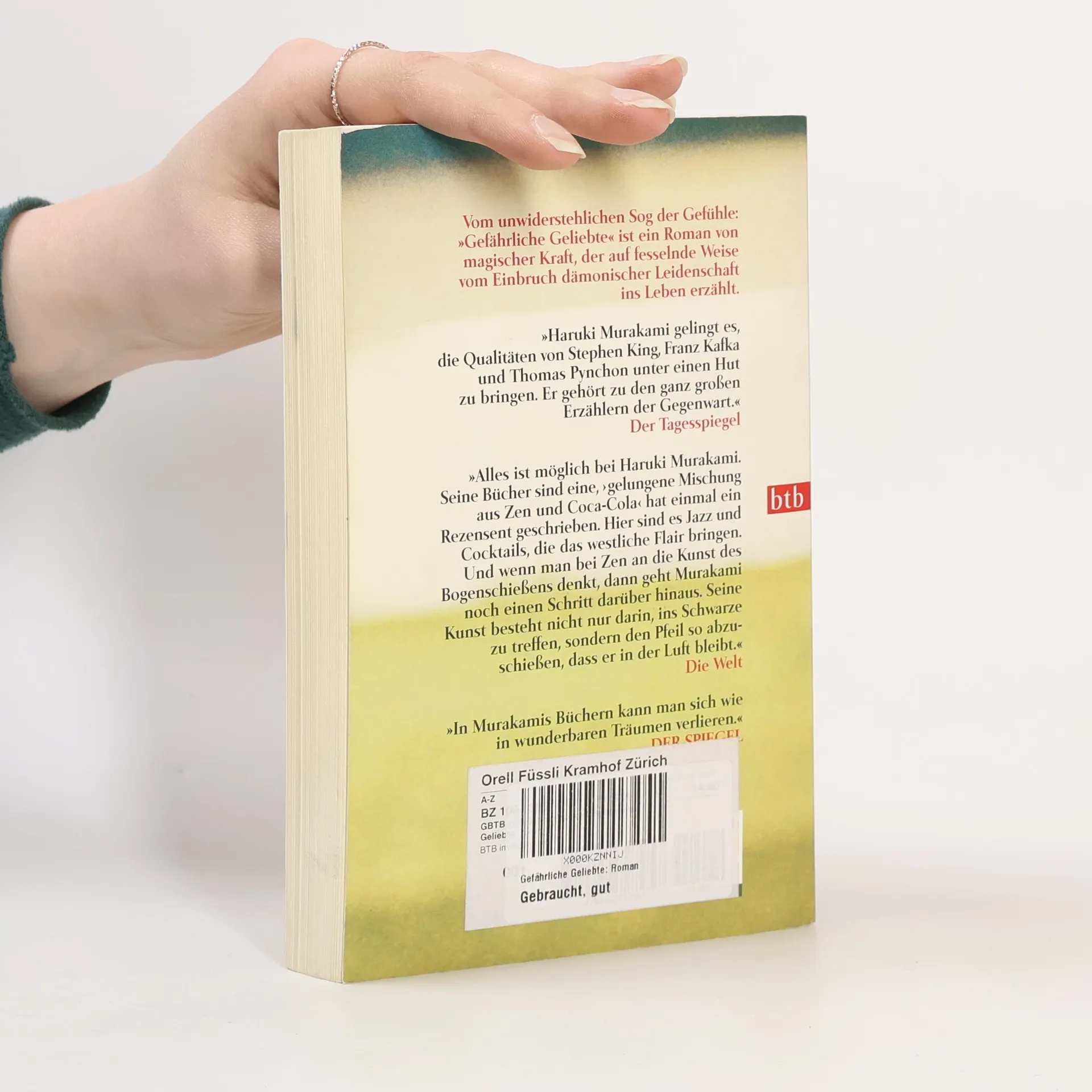 Der Traum von absoluter Perfektion beschäftigt selbst erfahrene Autoren regelmäßig. In einem Erzählband schilderte Haruki Murakami bereits, wie er eines Morgens das „100%ige Mädchen“ sah. Diese Figur, die nun wieder auftaucht, heißt Shimamoto und wird sich als gefährliche Geliebte erweisen. Zunächst ist sie ein zwölfjähriges Mädchen mit einem steifen linken Bein, eine Folge von Kinderlähmung, die Murakami so beschreibt, dass Gehfehler erotisch erscheinen. Shimamoto ist die erste Liebe des Ich-Erzählers Hajime. Gemeinsam erleben sie die Herausforderungen des Schulwegs und genießen Musik von Nat King Cole und Bing Crosby. Ein denkwürdiger Moment ihrer Kindheit ist, als sie für zehn Sekunden Hajimes Hand hält, was als tiefe Sehnsucht bleibt, selbst nachdem sie sich aus den Augen verloren haben. Jahre später, kurz vor Hajimes Midlife-Crisis, treffen sie sich wieder. Er ist mittlerweile ein glücklicher Familienvater und Betreiber zweier Jazz-Bars, während Shimamoto an seinem Fundament rüttelt. Sie bleibt ein Rätsel, das sich in ihrem vielsagenden Lächeln zeigt. Murakami erzählt meisterhaft von verpassten Gelegenheiten, leidenschaftlicher Sehnsucht und der weniger anstrengenden Durchschnittsrealität, stets subtil und fesselnd.